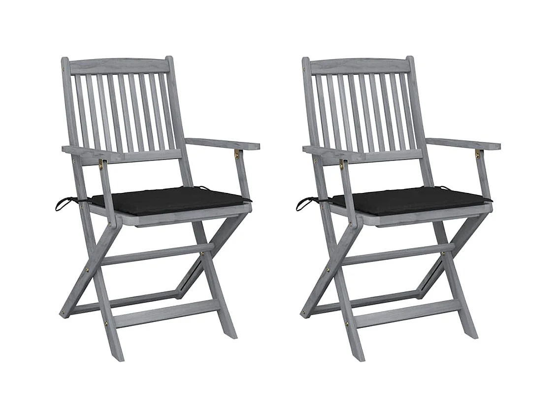 Chaises pliables d'extérieur 2 pièces avec coussins Bois d'acacia