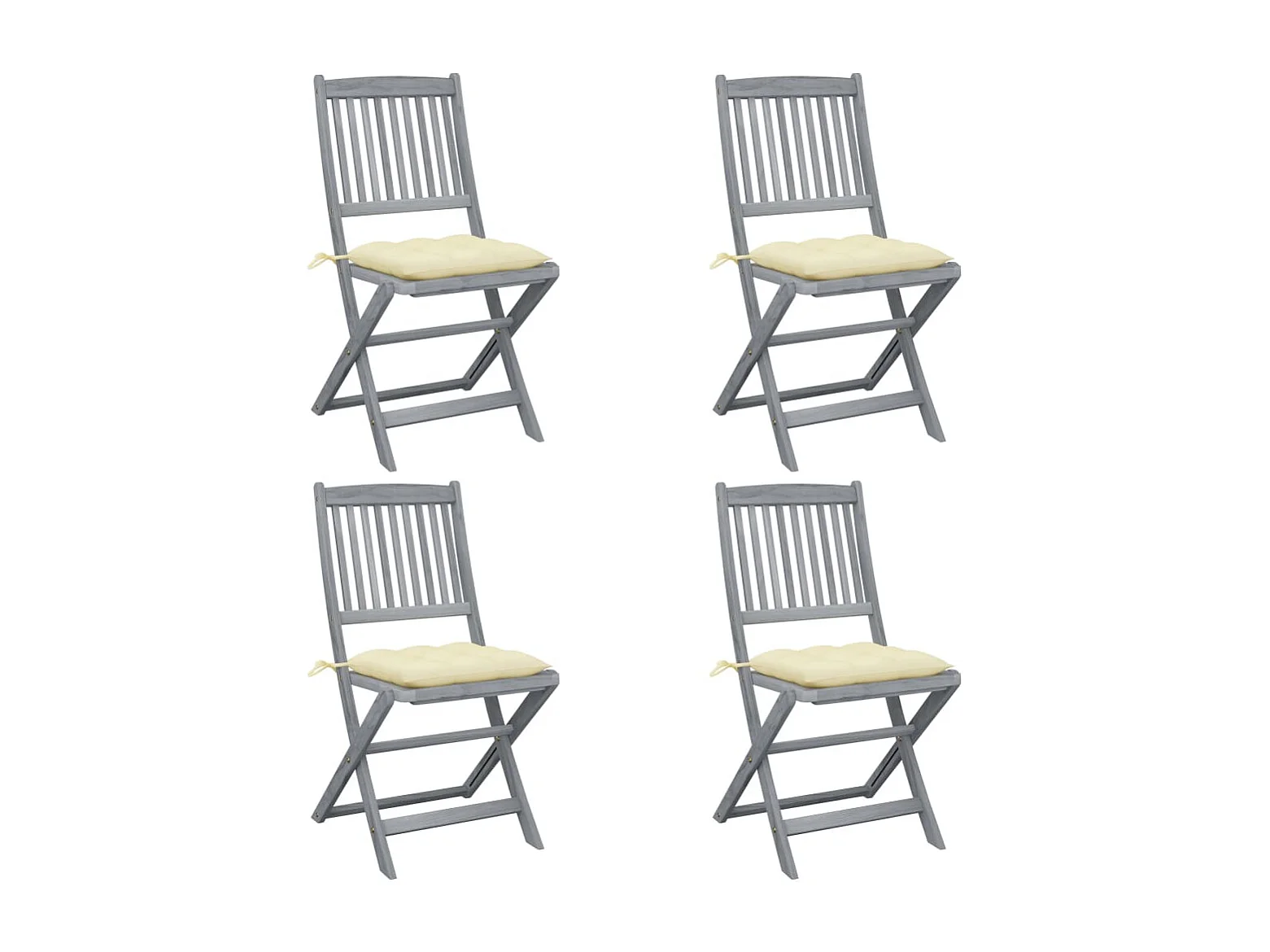 Chaises pliables de jardin 4 pcs avec coussins Bois d'acacia