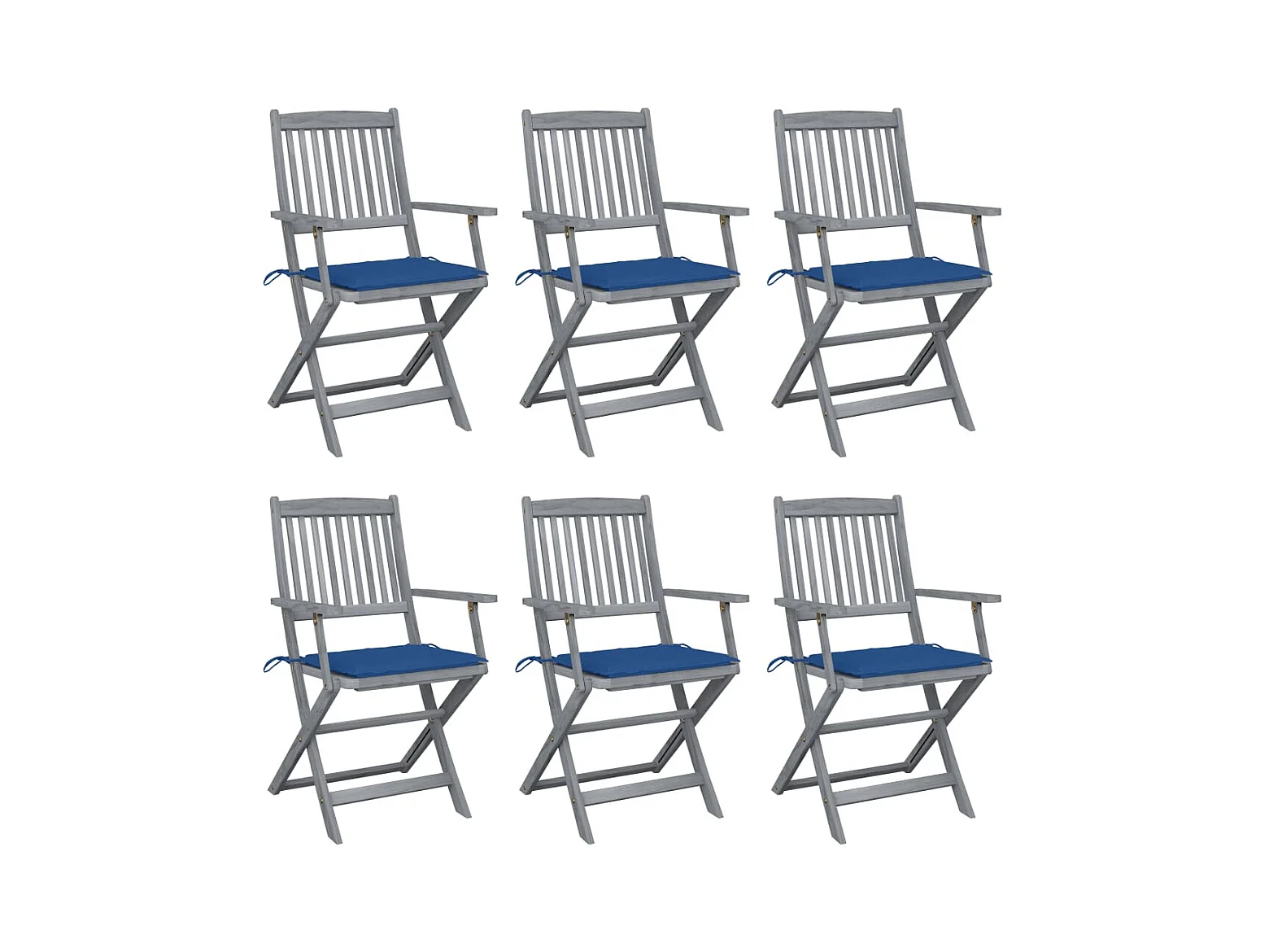 Chaises pliables d'extérieur lot de 6 et coussins Bois d'acacia