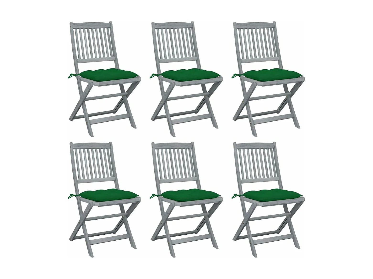 Chaises pliables d'extérieur 6 pcs avec coussins Bois d'acacia