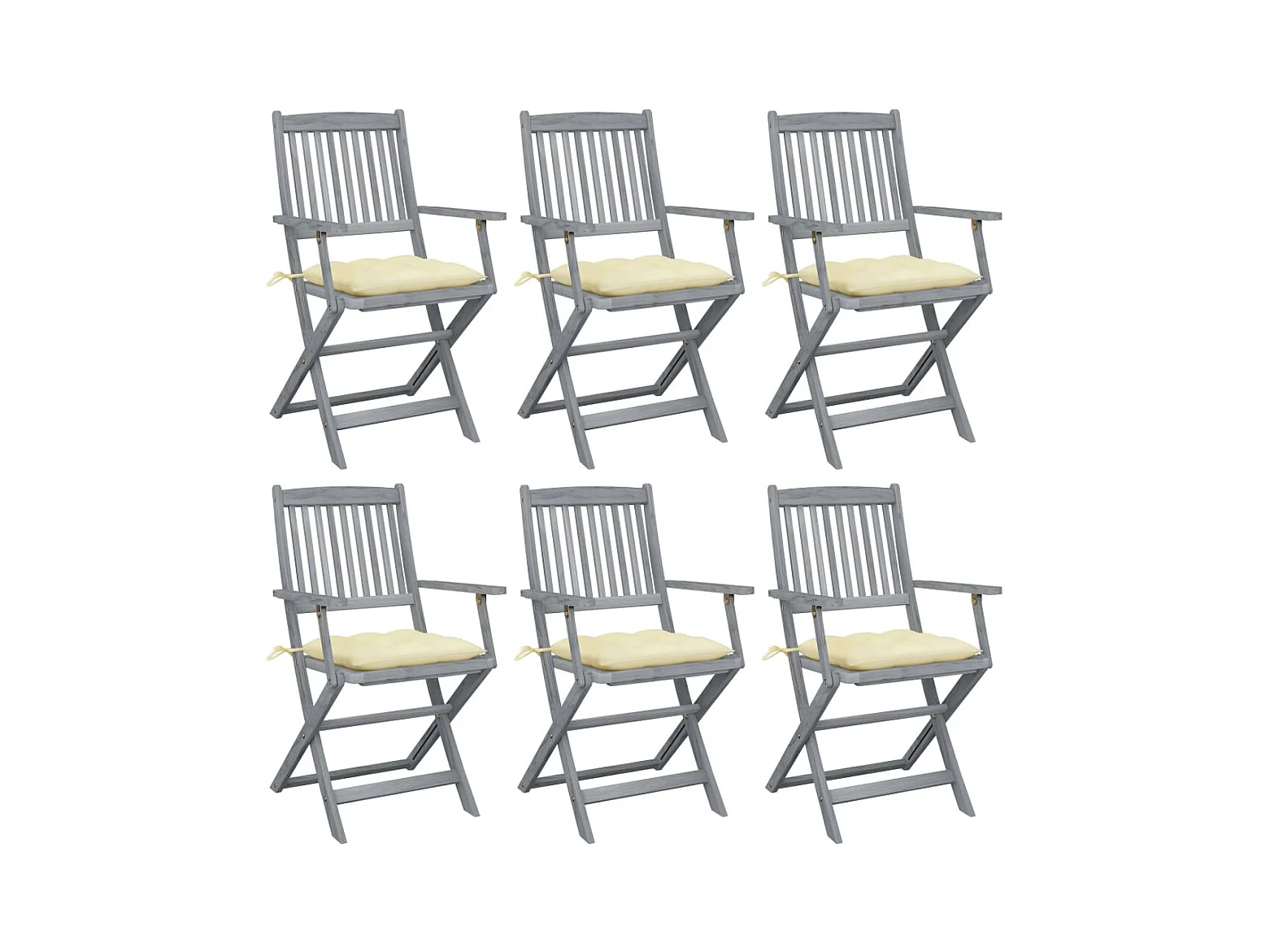Chaises pliables d'extérieur 6 pcs avec coussins Bois d'acacia