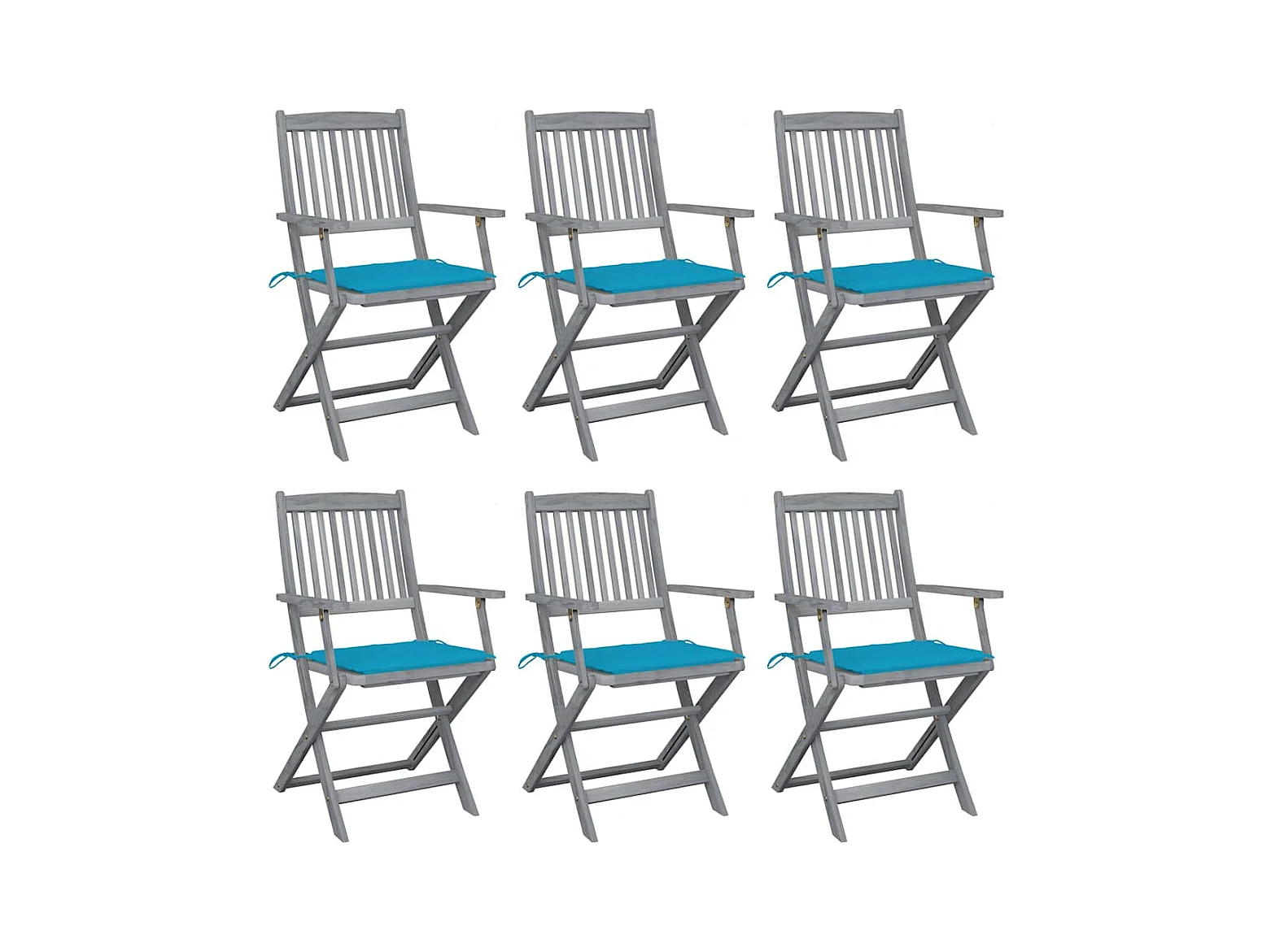 Chaises pliables d'extérieur 6 pièces avec coussins Bois d'acacia