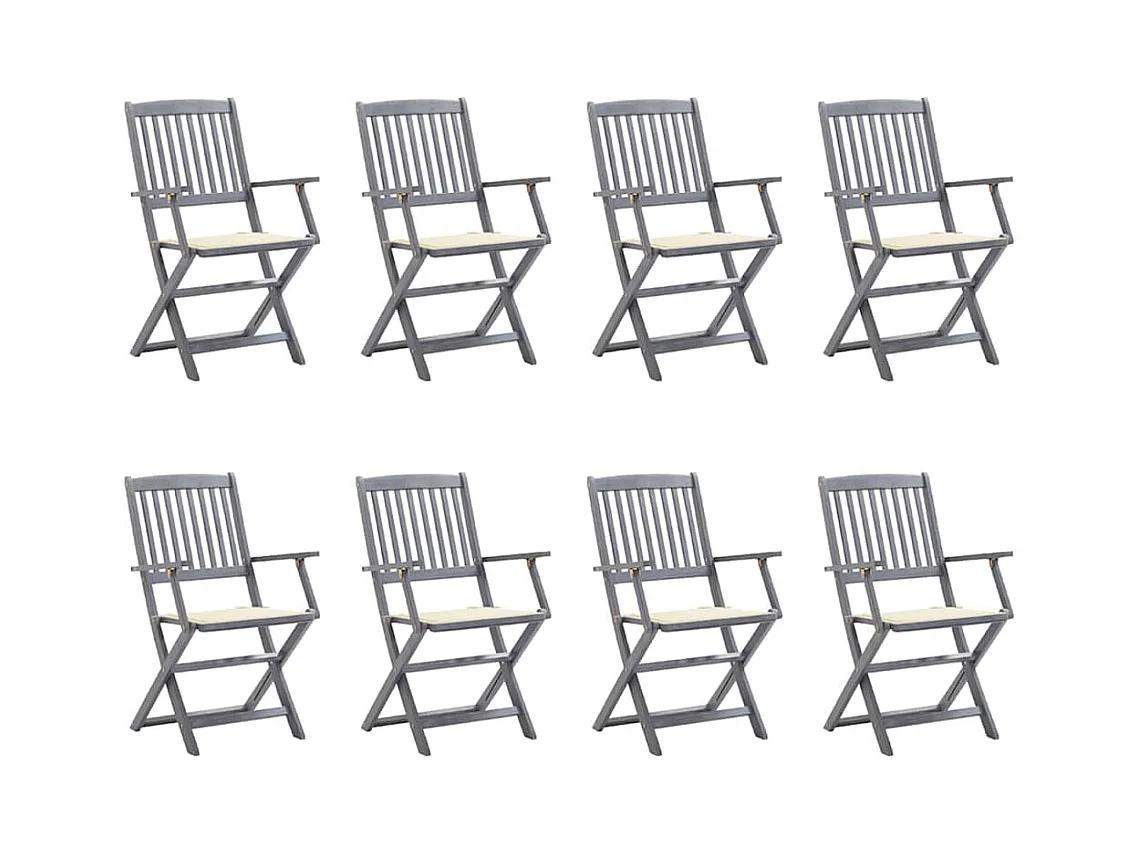 Chaises pliables d'extérieur avec coussins 8 pièces Bois d'acacia