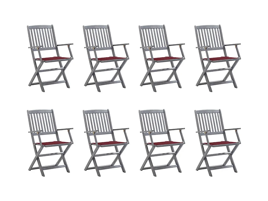 Chaises pliables d'extérieur avec coussins 8 pièces Bois d'acacia