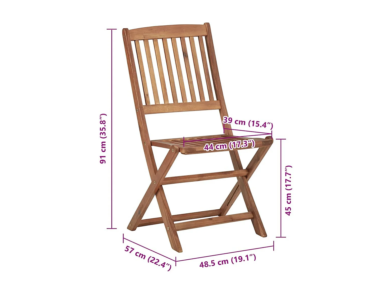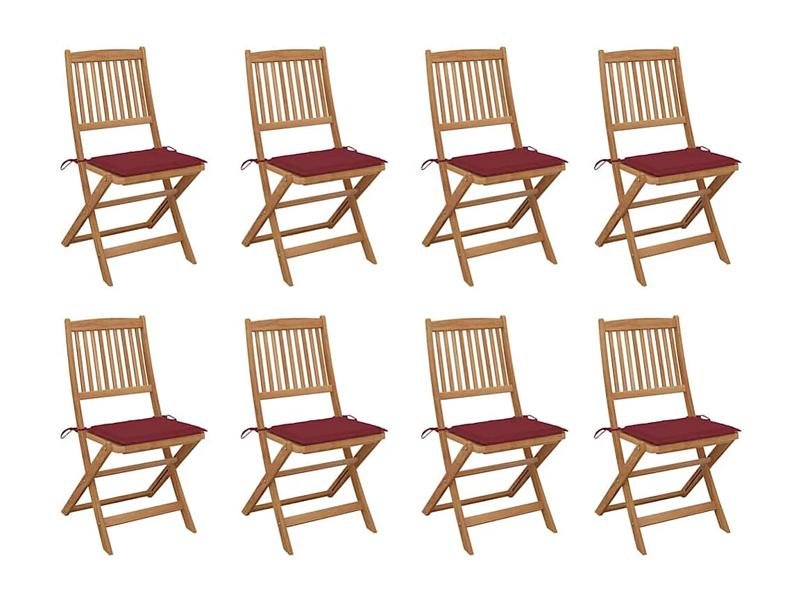 Chaises pliables d'extérieur et coussins lot de 8 Bois d'acacia