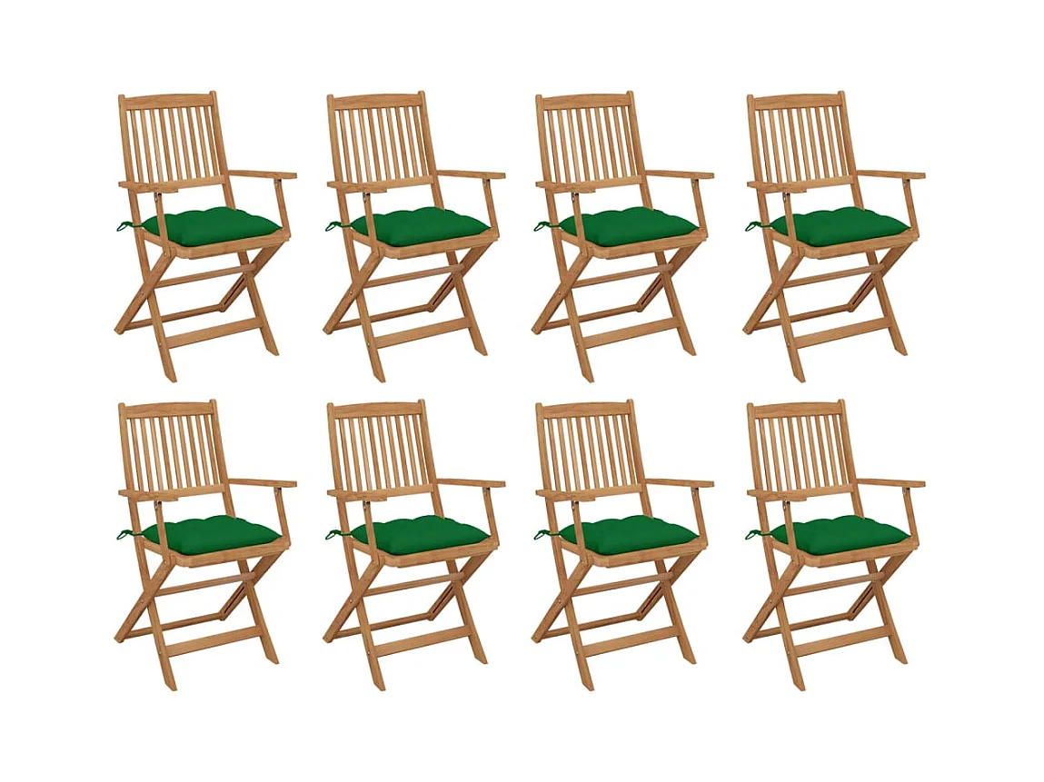 Chaises pliables d'extérieur avec coussins 8 pcs Bois d'acacia