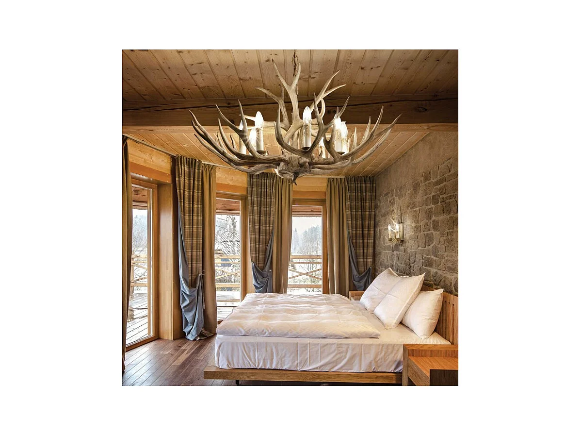 Ideal Lux Chalet Lustre à 8 ampoules, brun clair, E14