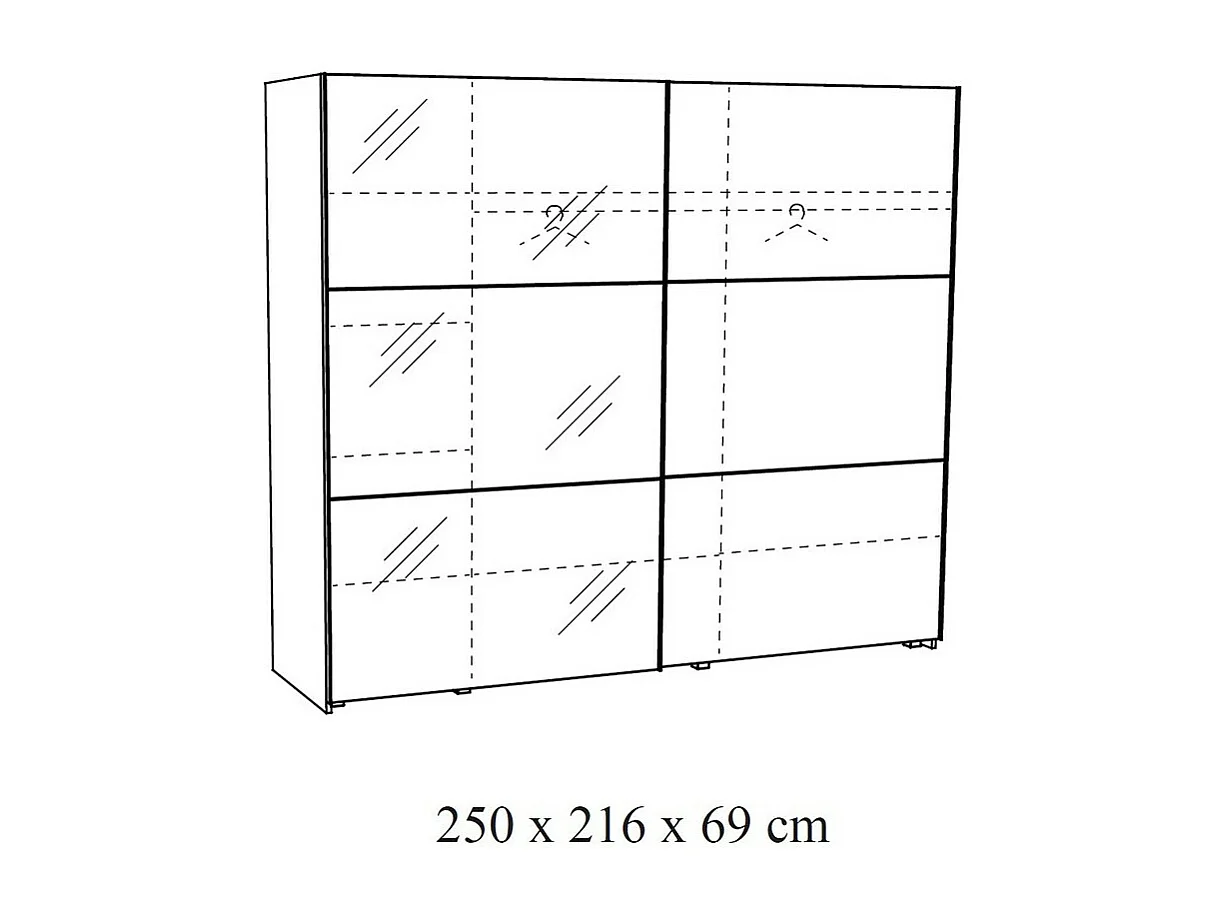 Chambre à coucher adulte collection OLVENA : Armoire 250cm, Lit 160x200, commode, chevets. Couleur blanc effet bois.