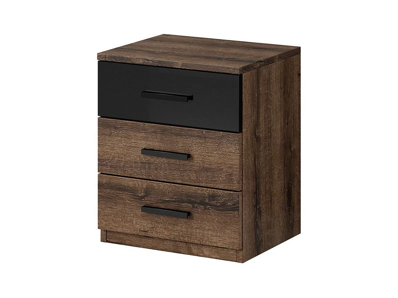Chambre compléte style industriel collection MILOS : armoire 3 portes, lit 180x200, commode, chevets, chêne brut et noir