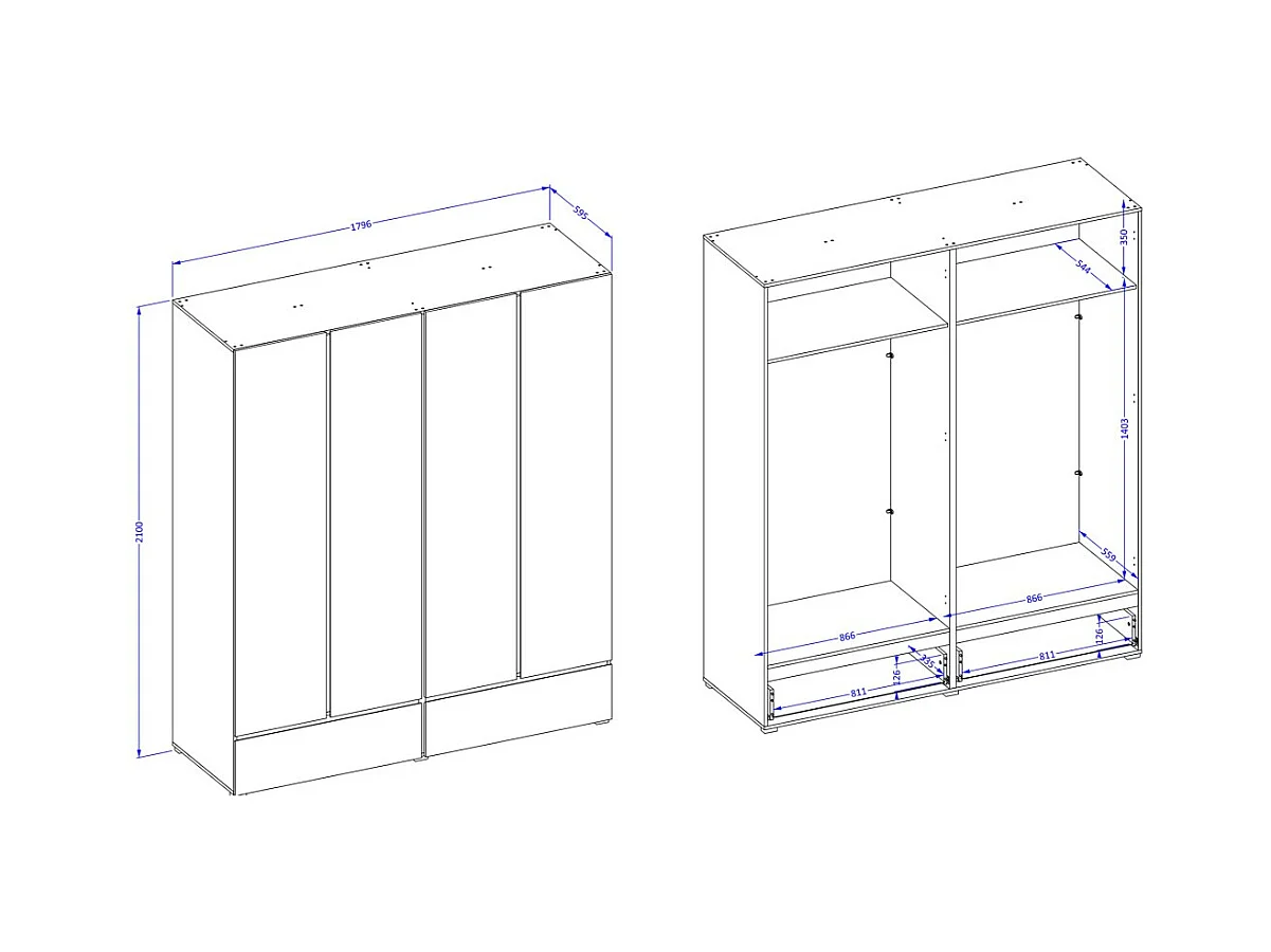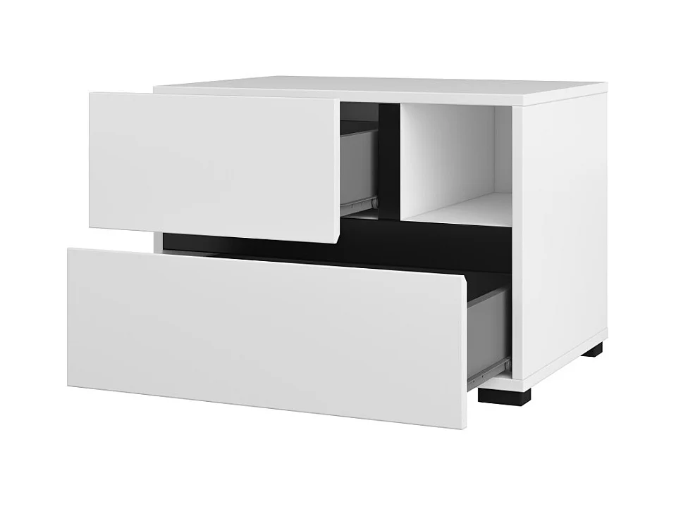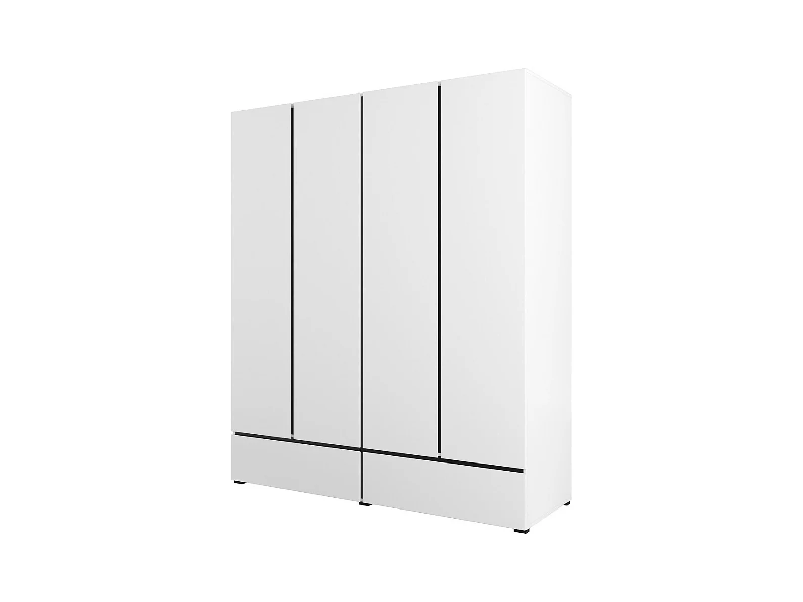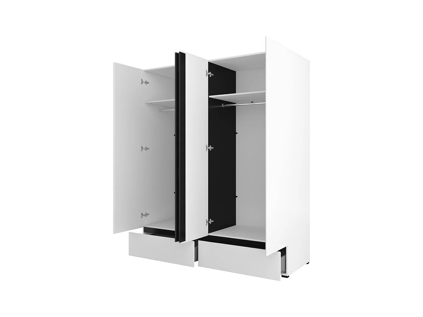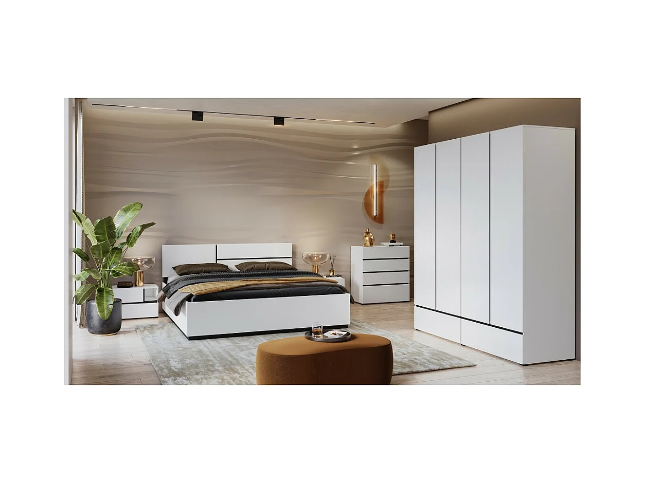 Chambre complète HAVANA blanc et noir – Lit 160x200, armoire 4 portes, chevets et commode