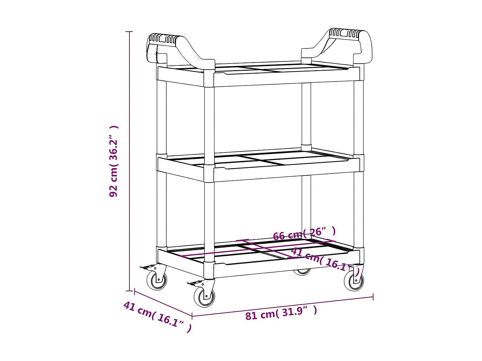 Chariot à 3 niveaux noir 81x41x92 cm aluminium