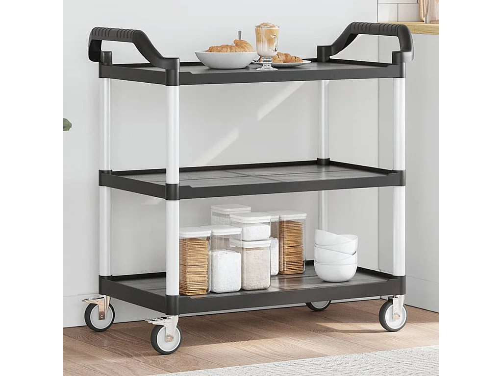 Chariot à 3 niveaux noir 99x50x96 aluminium