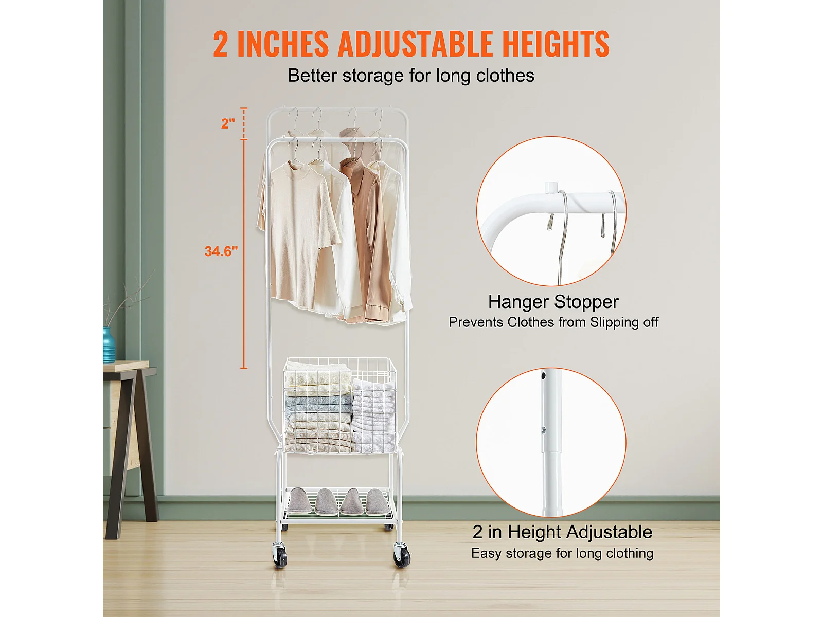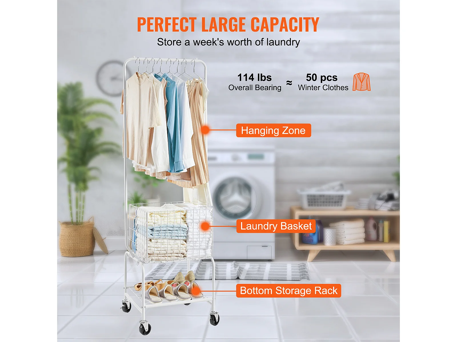 Chariot à Linge Roulant SucceBuy avec 4 Roues et Support Suspendu pour Salle de Bain