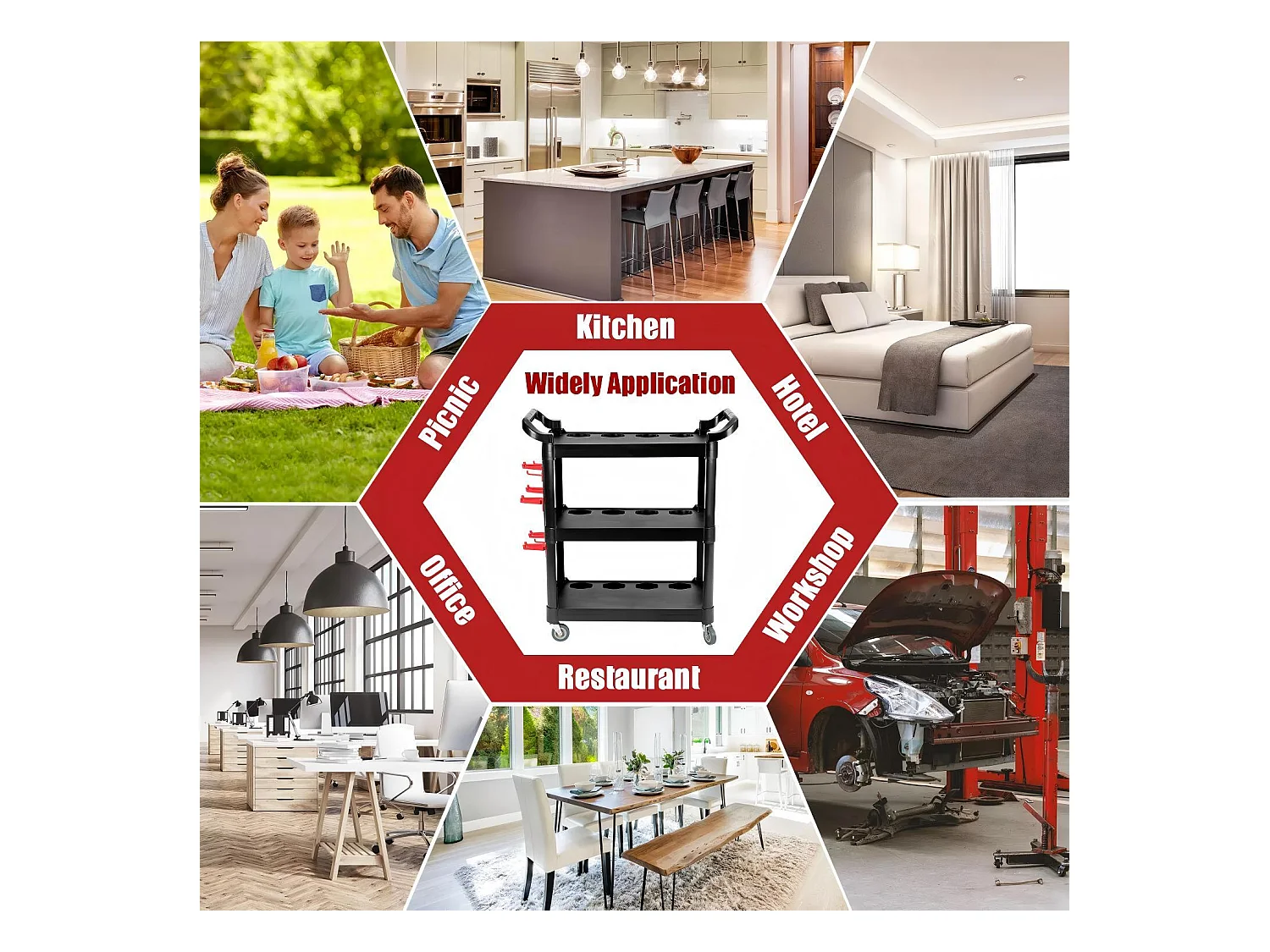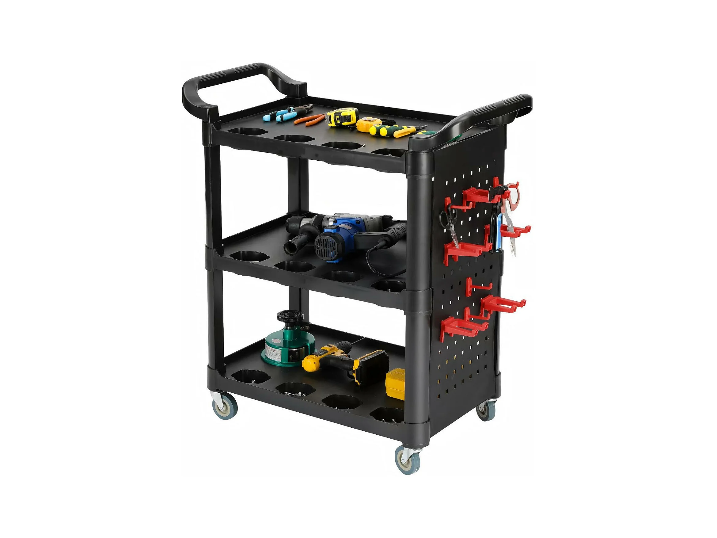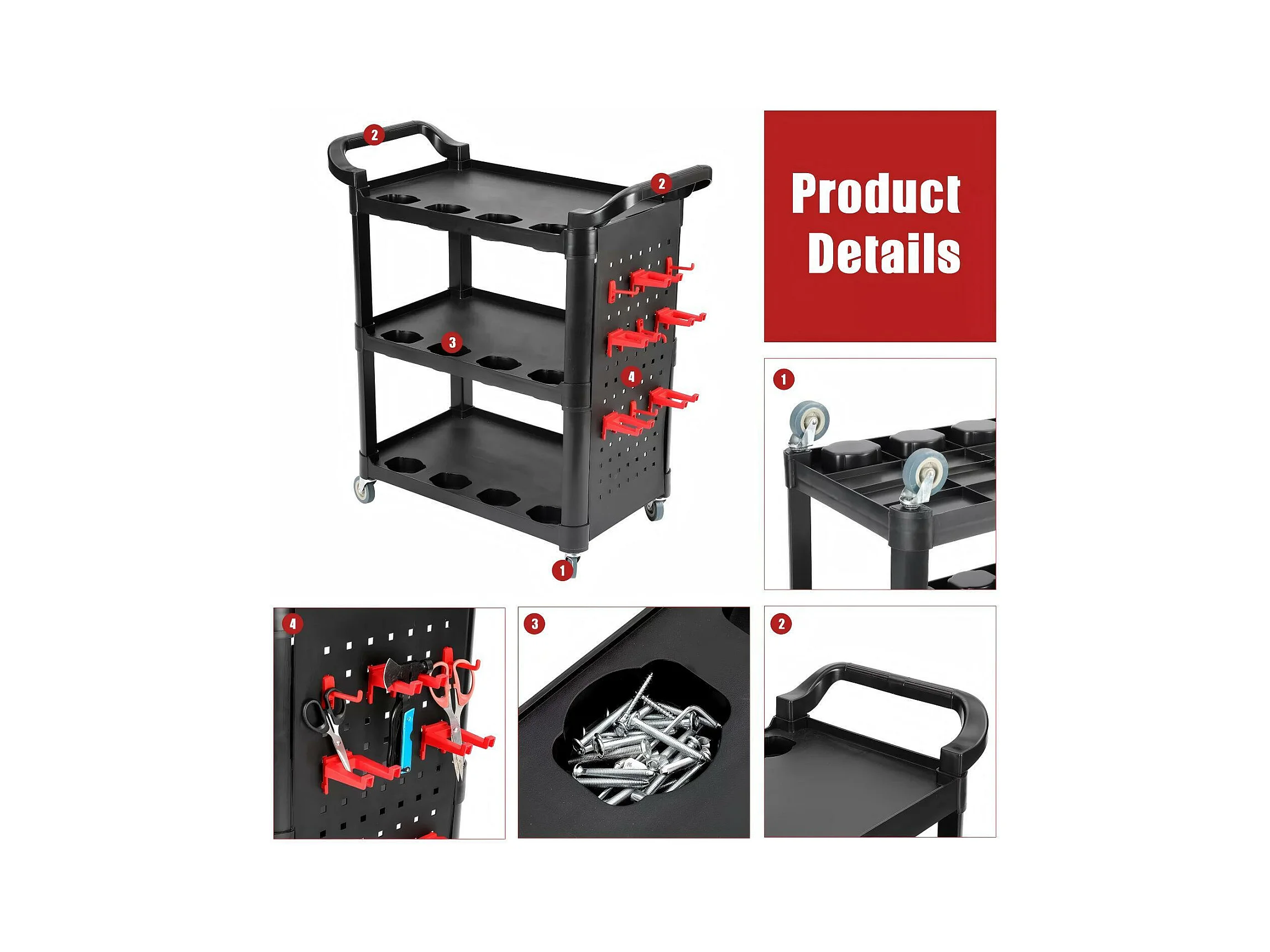 Chariot à outils pour atelier, Chariot à Outils mobile 3 Plateaux, avec 10 crochets et 1 panneau de suspension, charge max 150kg
