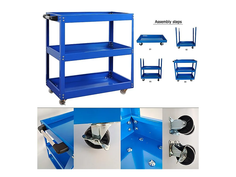 Chariot à outils pour atelier, stockage d'outils, roue caoutchouc solide, max200kg, 66x36x74cm