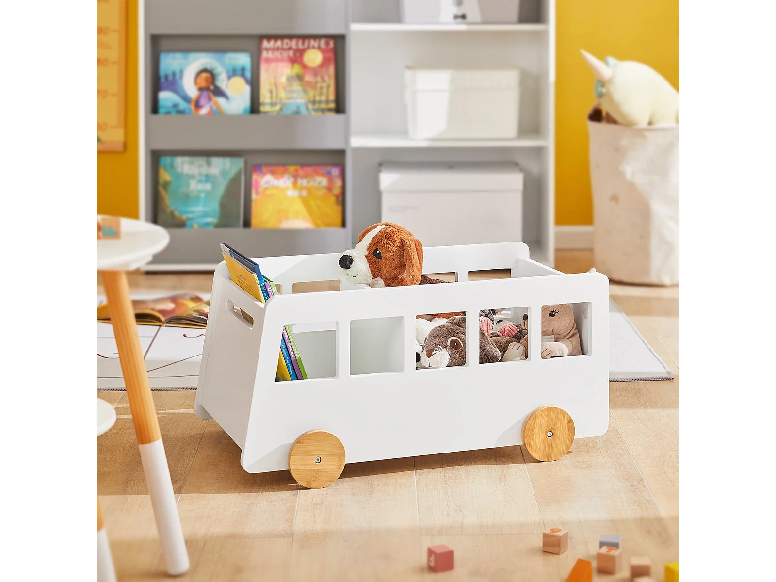 Chariot Bibliothèque Pour Enfants, Coffre À Roulettes, Organisateur Pour Jouets Et Livres, Kmb41-w