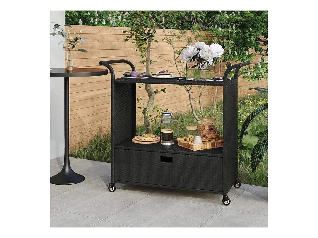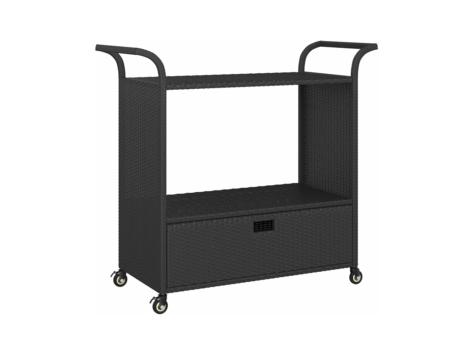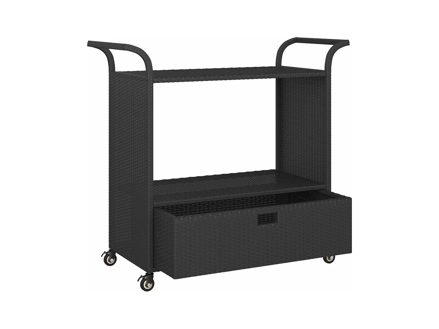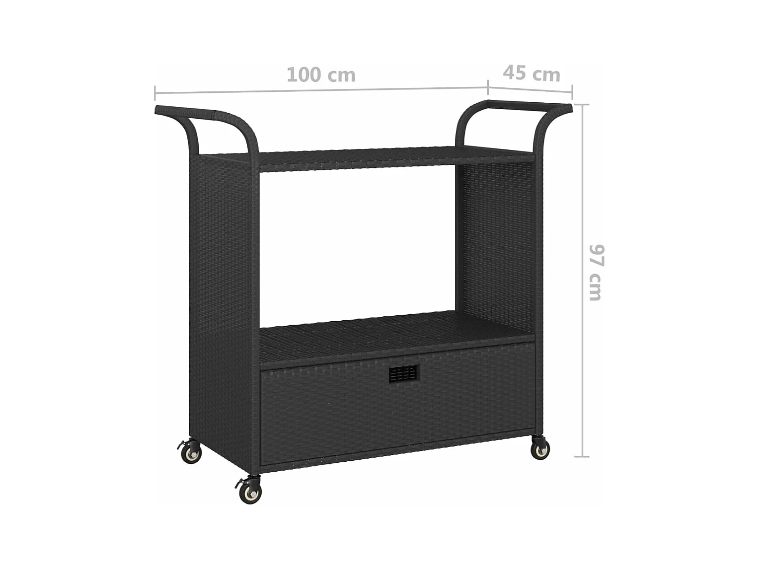 Chariot de bar avec tiroir Noir 100x45x97 cm Résine tressée