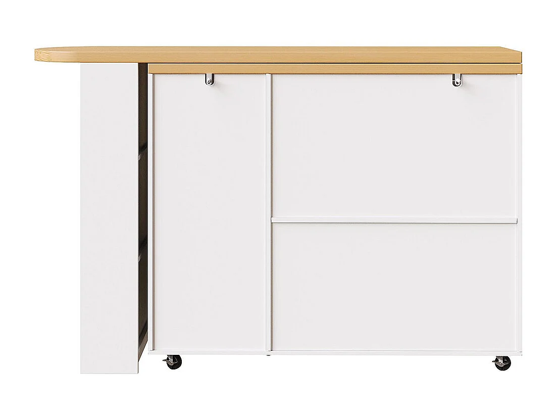 Chariot de bar extensible avec 2 portes et 3 tiroirs, roulant, comptoir extérieur en bois, blanc