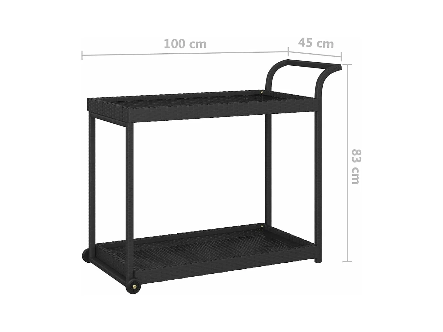 Chariot de bar Noir 100x45x83 cm Résine tressée