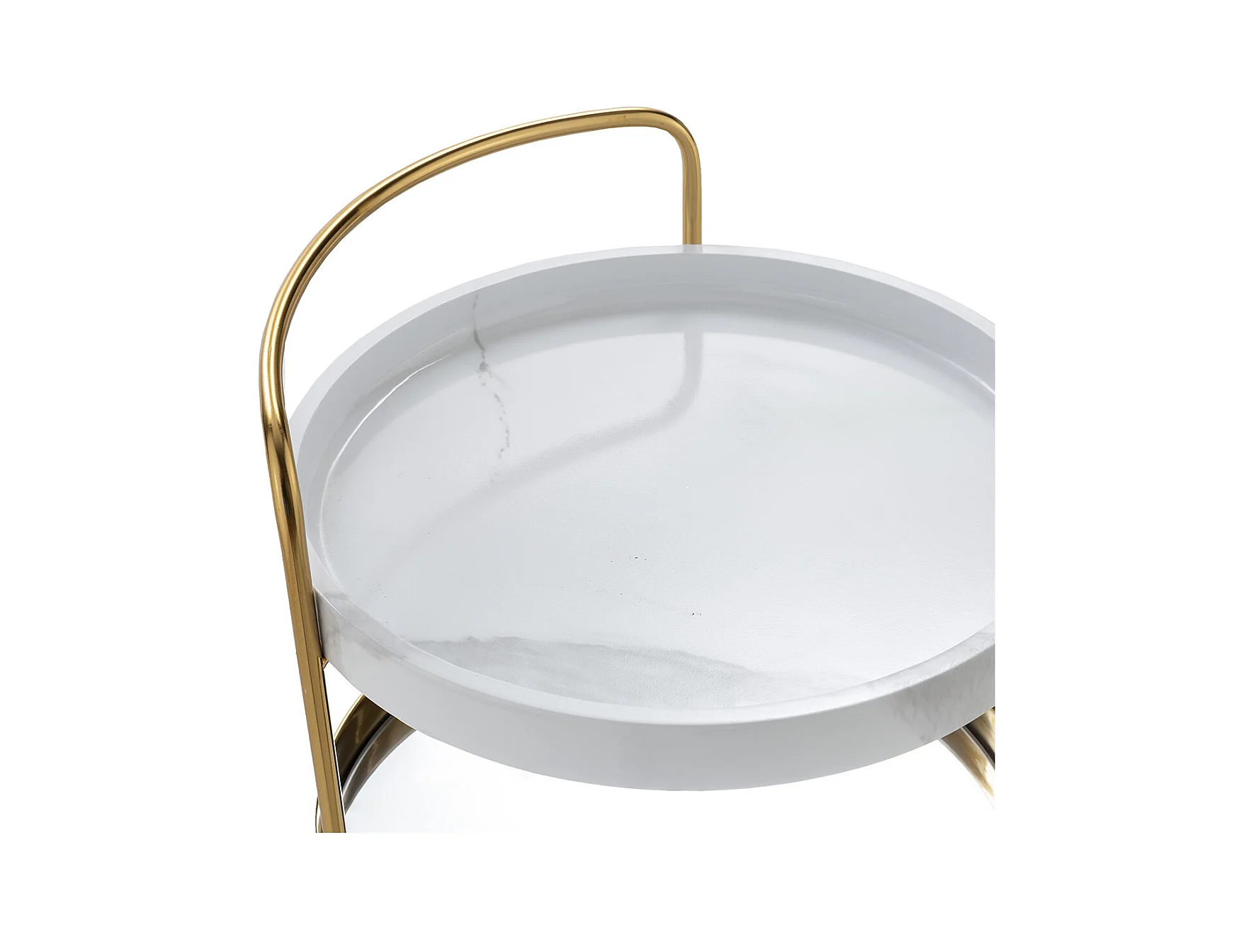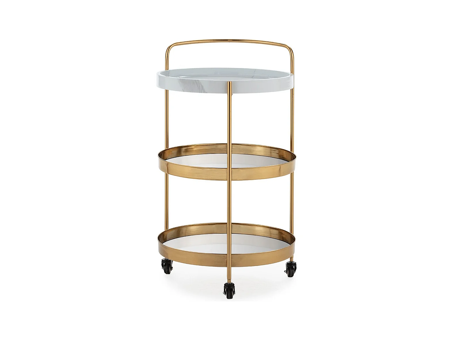 Chariot de bar ZOVA en métal, marbre artificiel et miroir – Doré & Blanc