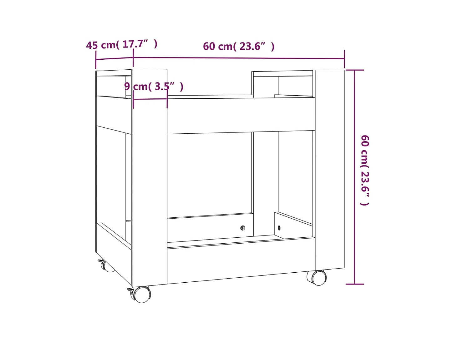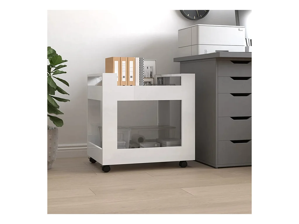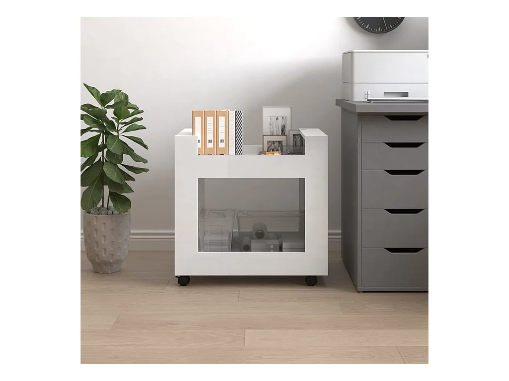 Chariot de bureau Blanc brillant 60x45x60 cm Bois d'ingénierie