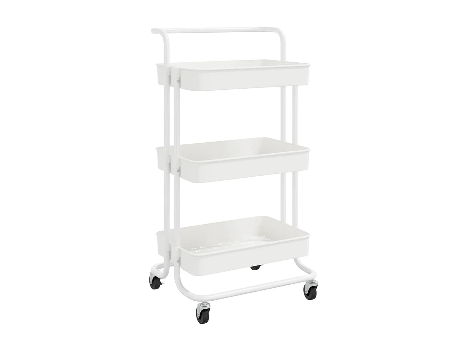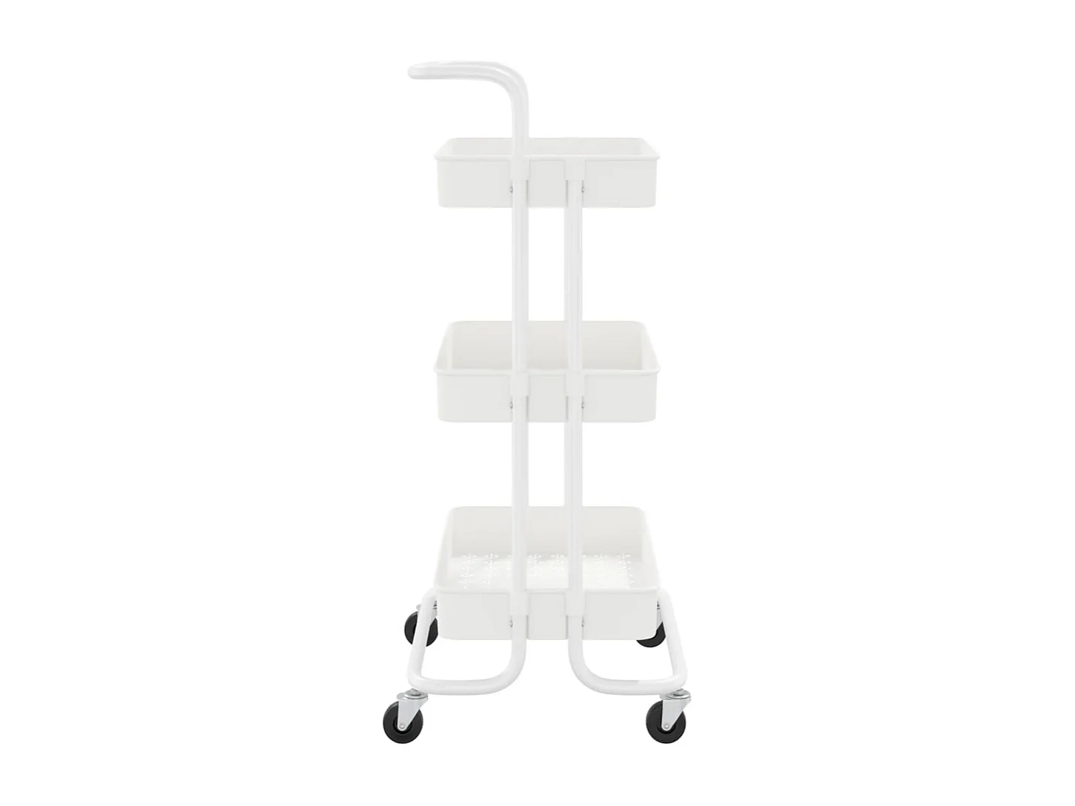 Chariot de rangement avec 3 étagères et panier suspendu, métal, blanc (50x29.4x77 cm)