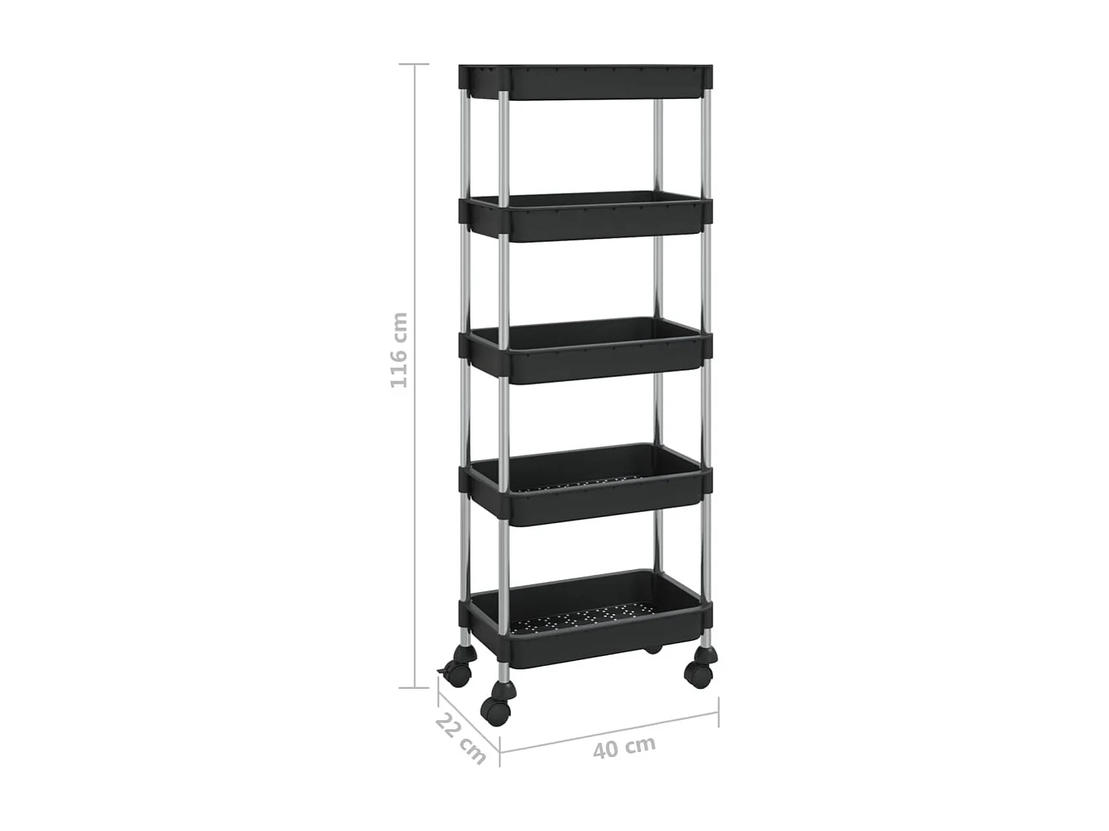 Chariot de cuisine 5 niveaux en métal Luiza 40cm - Compact et pratique-Noir