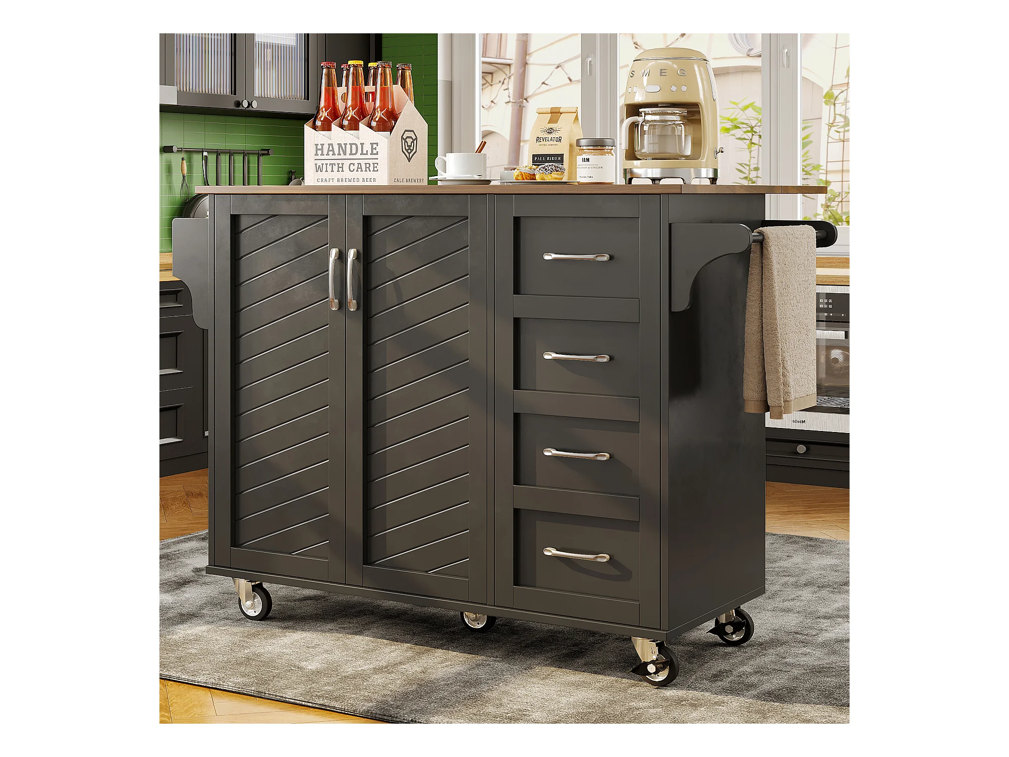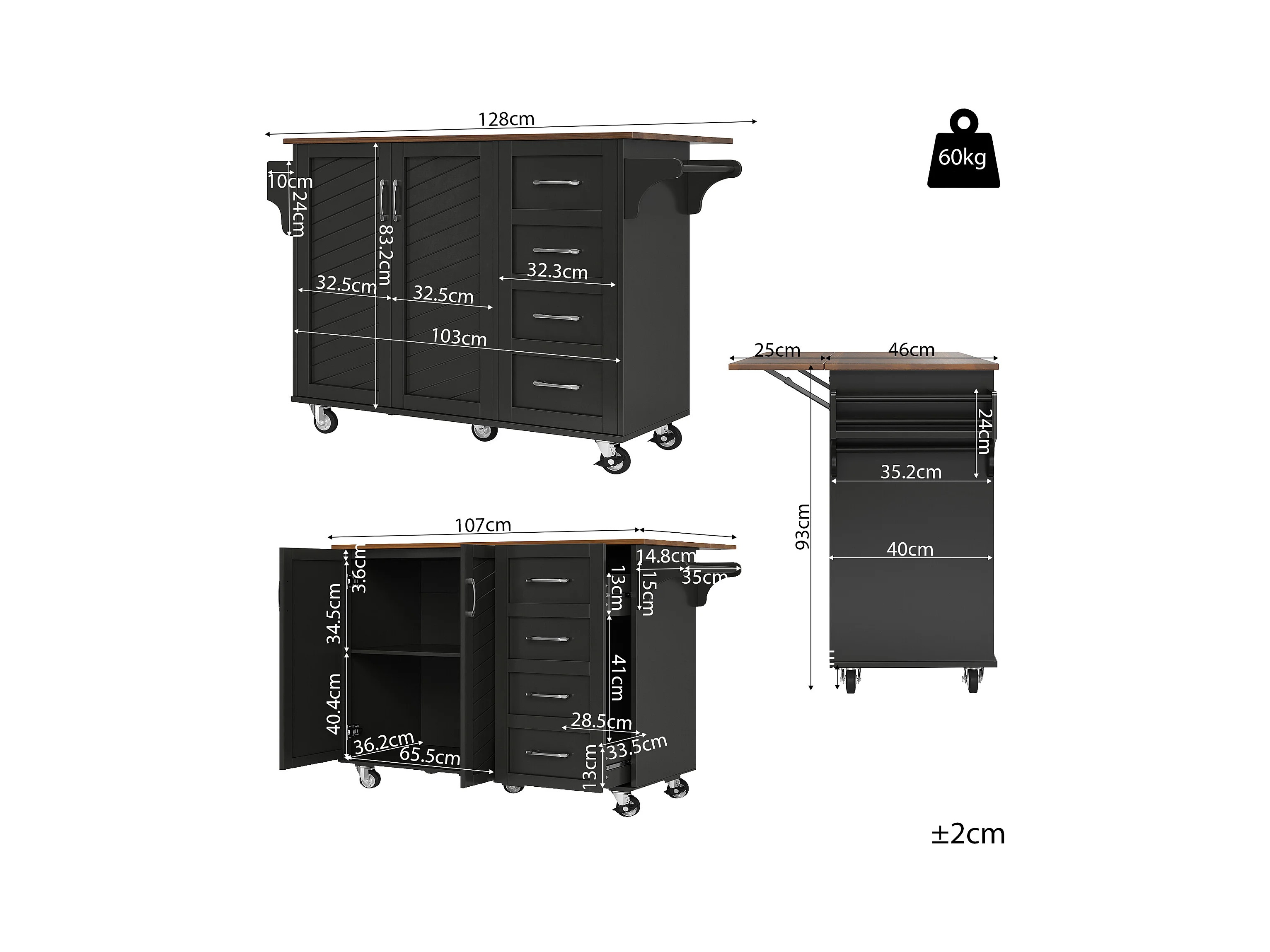 Chariot de cuisine mobile avec tiroirs, design dual fixe et mobile, MDF, noir (134x46x92cm)