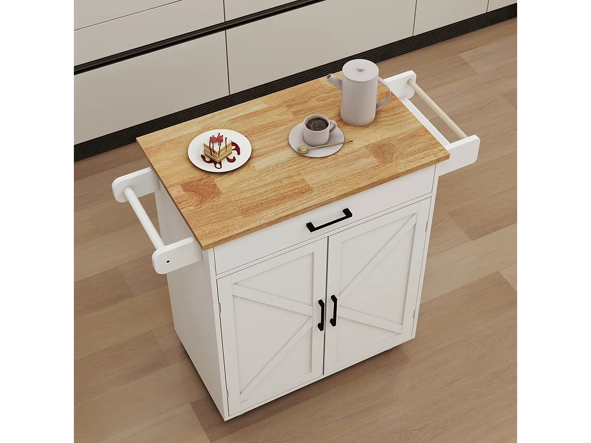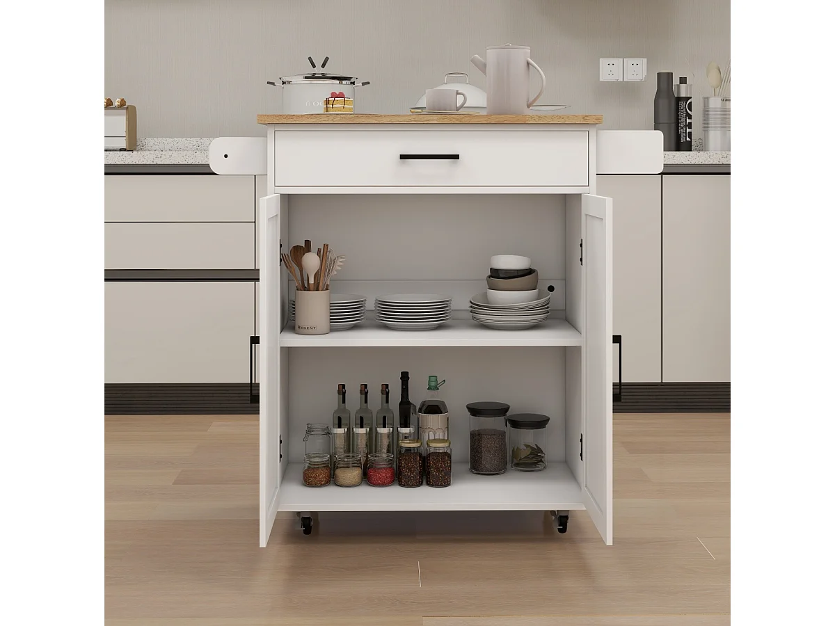 Chariot de cuisine avec étagères réglables, porte-serviettes et porte-épices, blanc