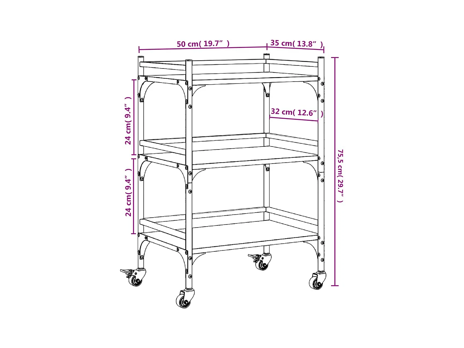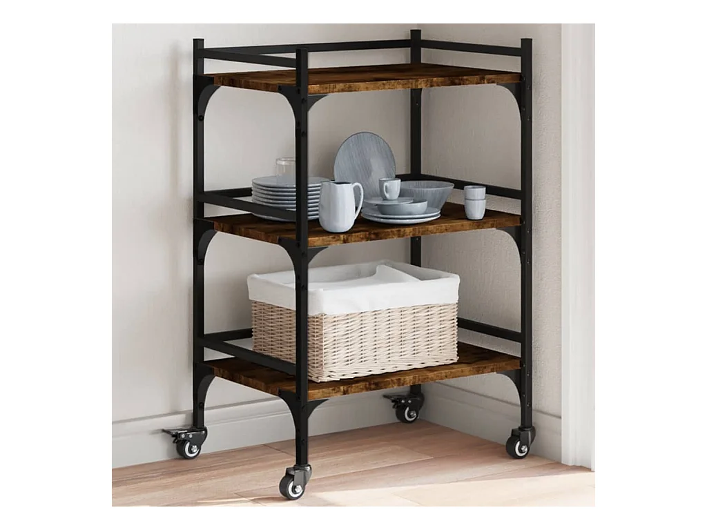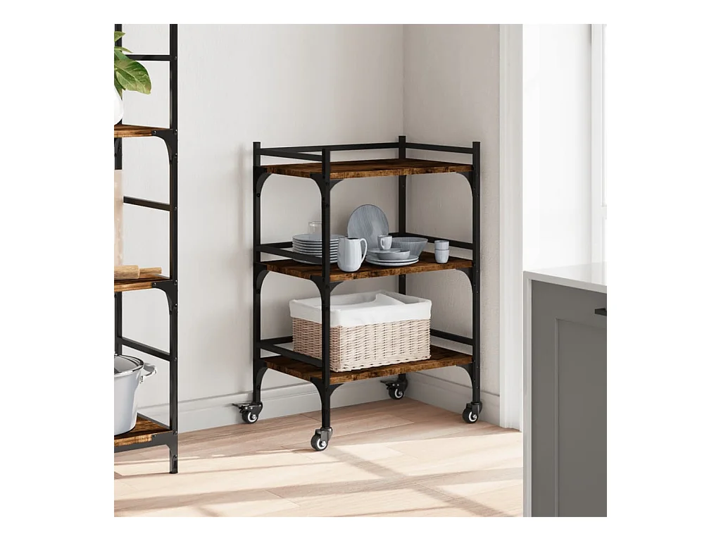 Chariot de cuisine chêne fumé 50x35x75,5 cm bois d'ingénierie