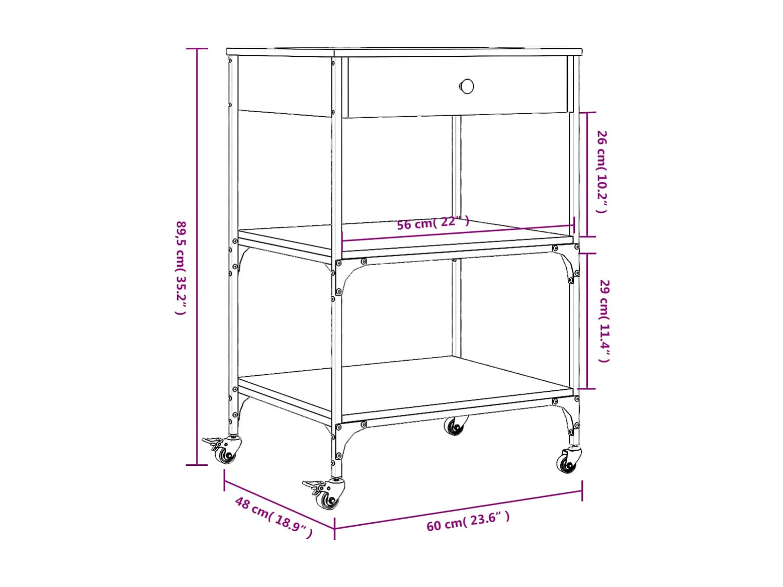 Chariot de cuisine chêne fumé 60x48x89,5 cm bois d'ingénierie
