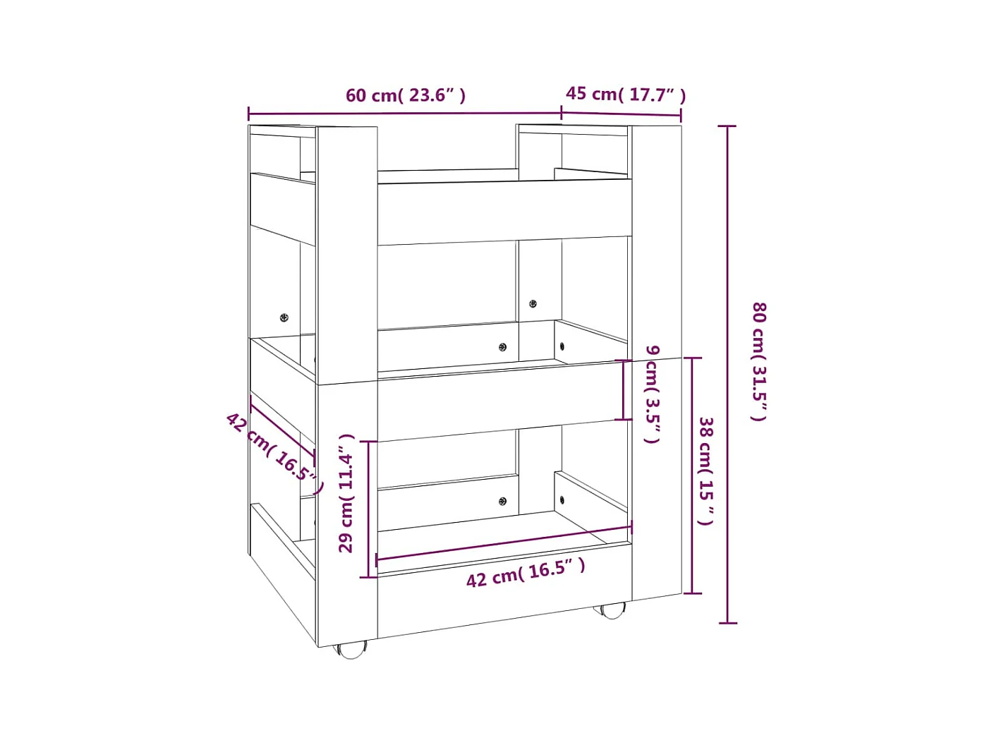 Chariot de cuisine Chêne marron 60x45x80 cm Bois d'ingénierie