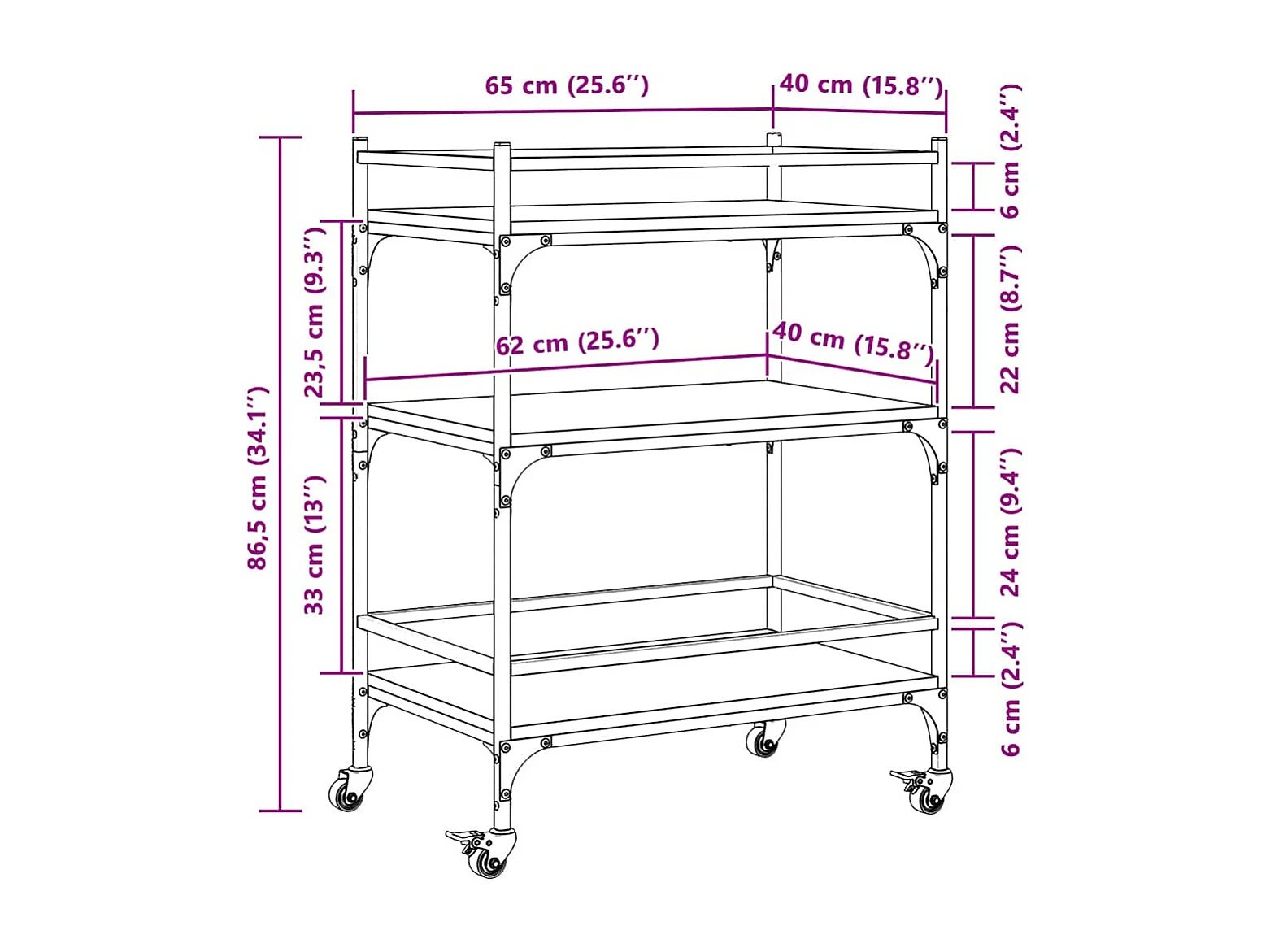 Chariot de cuisine chêne marron 65x40x86,5 cm bois d'ingénierie