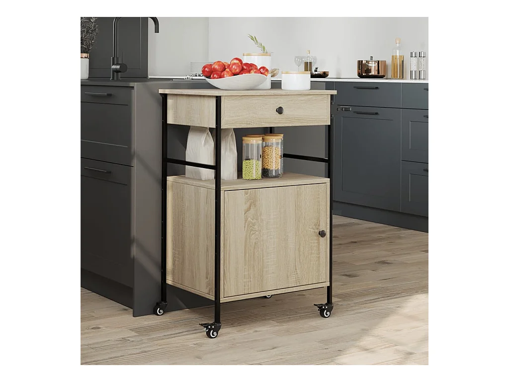 Chariot de cuisine chêne sonoma 56x43x89,5 cm bois d'ingénierie