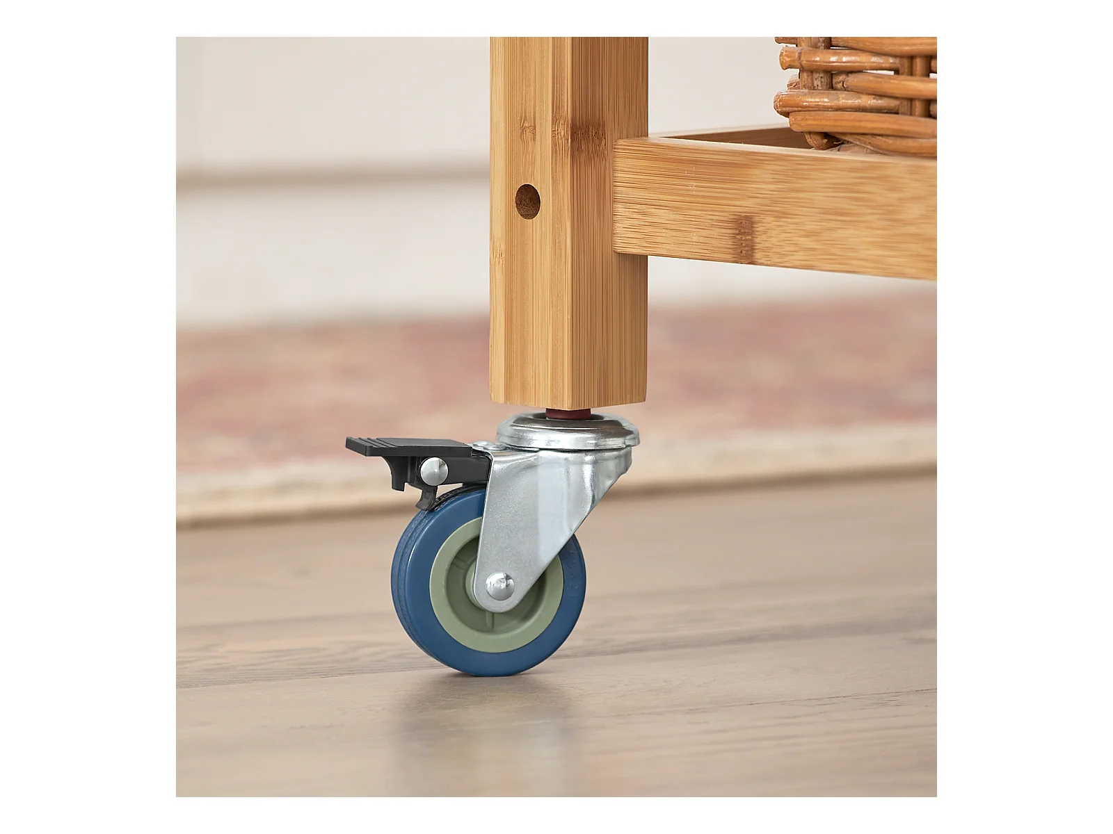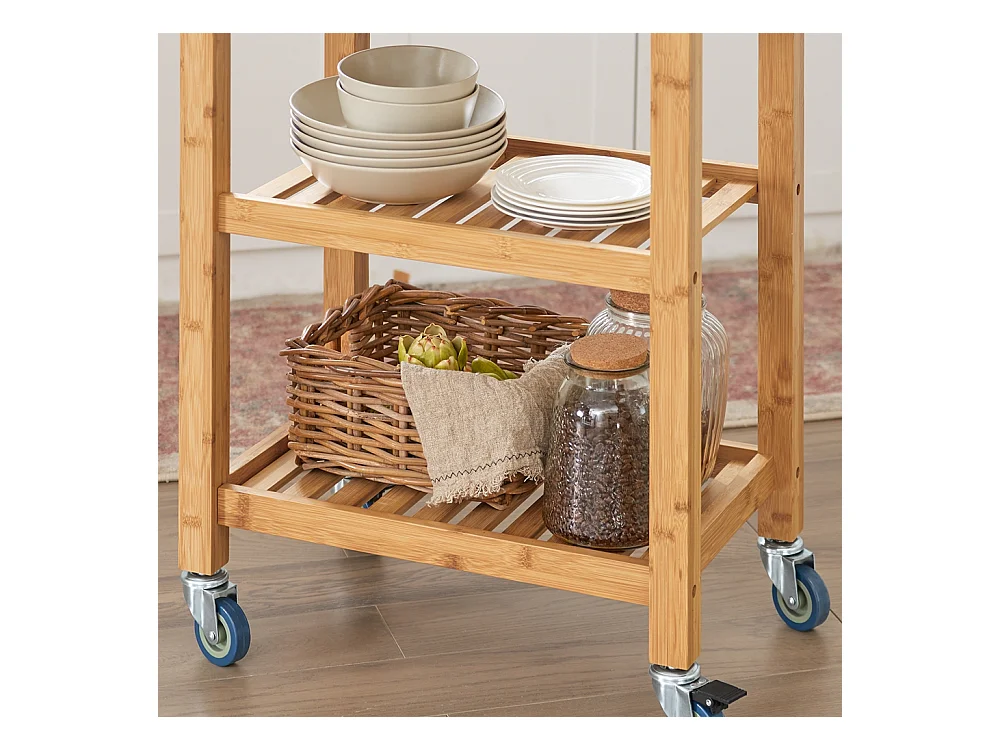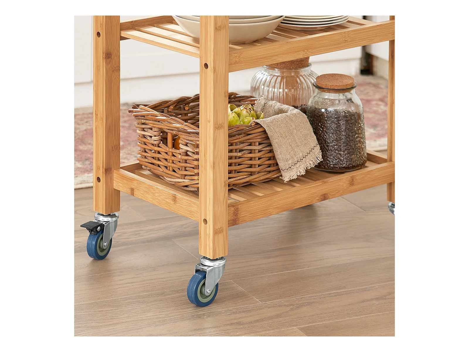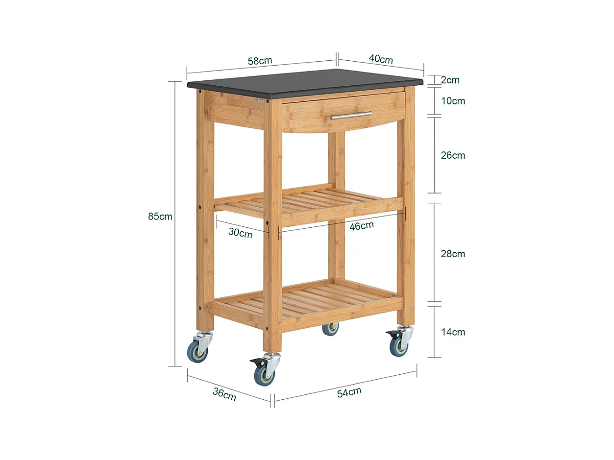 Chariot De Cuisine De Service Roulant En Bambou Plateau En Granit Noir, Fkw28-sch