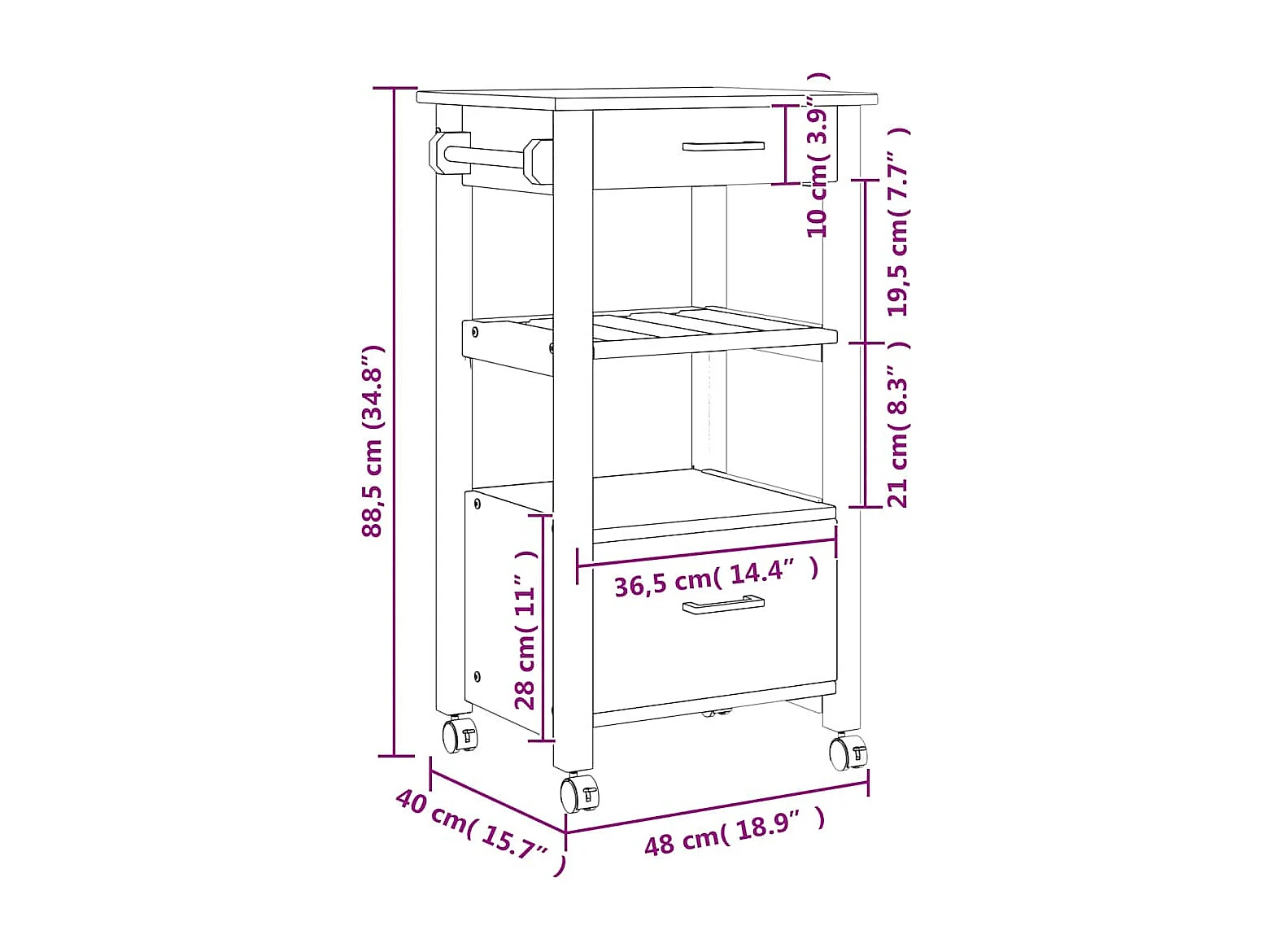 Chariot de cuisine MONZA 48x40x88,5 cm bois massif de pin