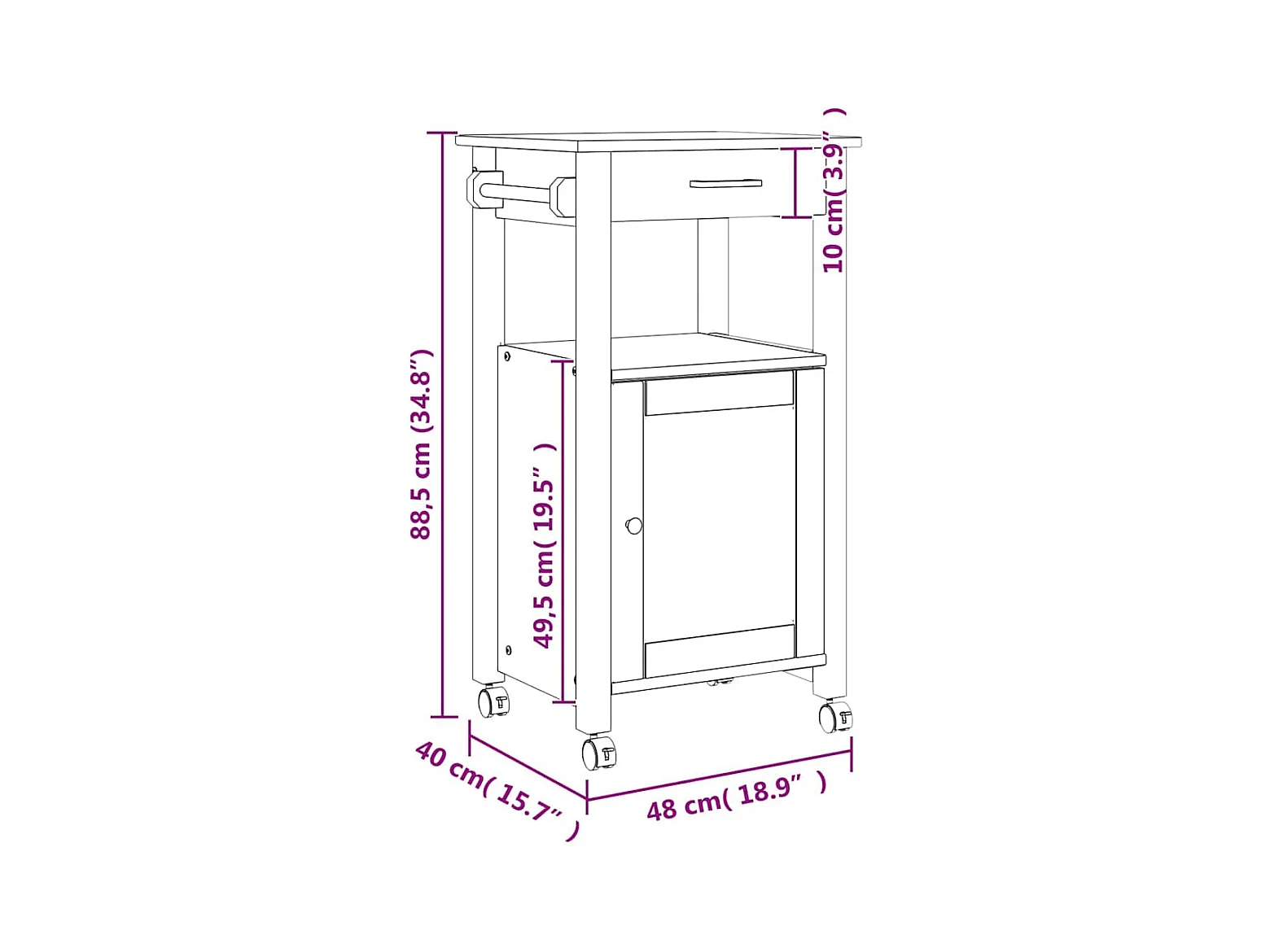 Chariot de cuisine MONZA 48x40x88,5 cm bois massif de pin