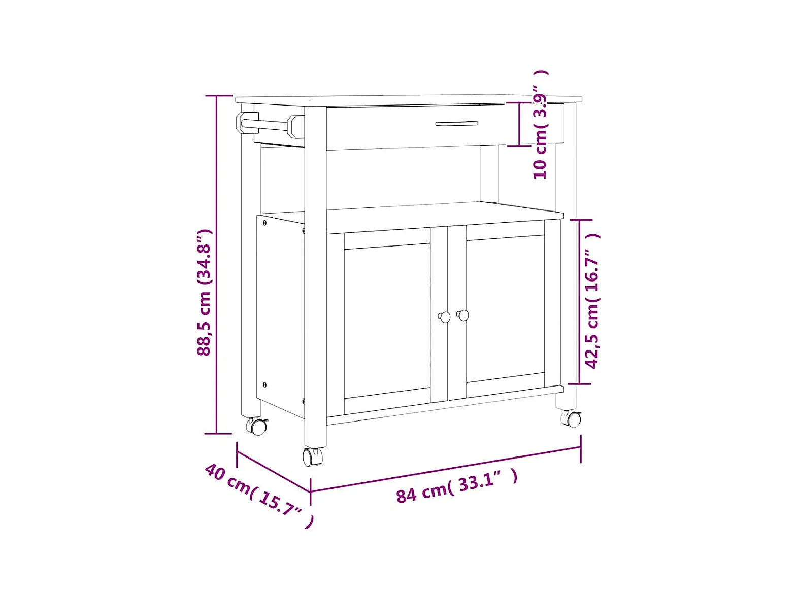 Chariot de cuisine MONZA 84x40x88,5 cm bois massif de pin