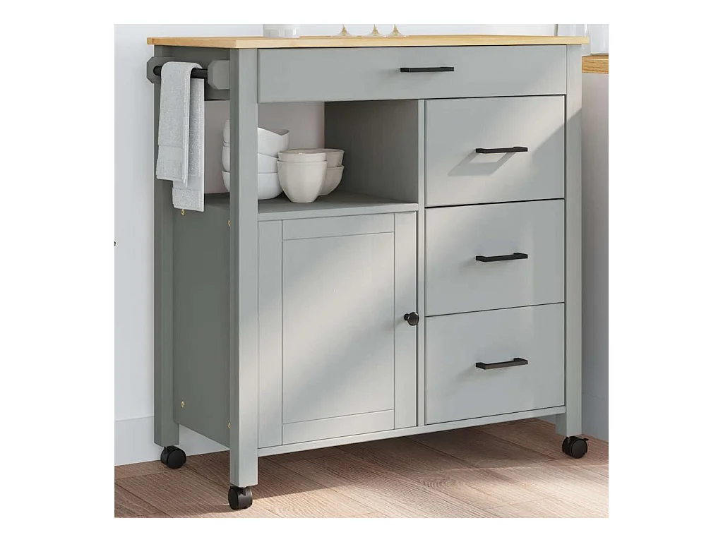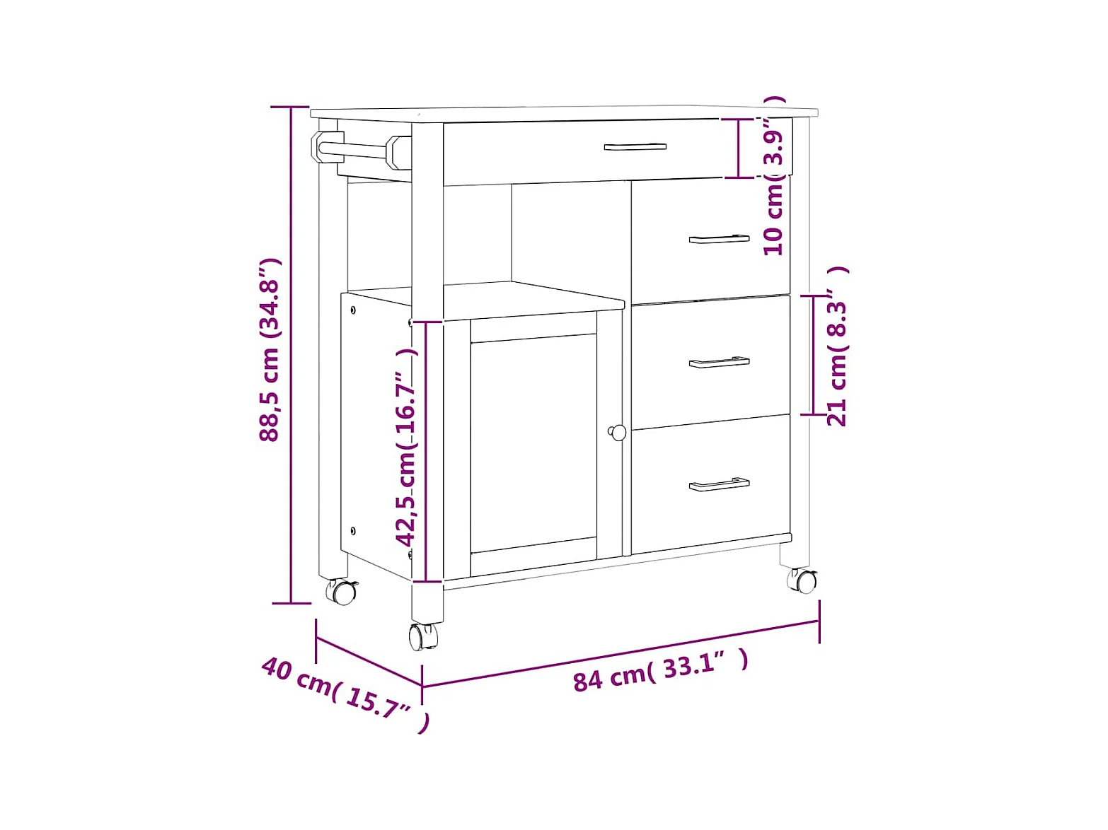 Chariot de cuisine MONZA 84x40x88,5 cm bois massif de pin