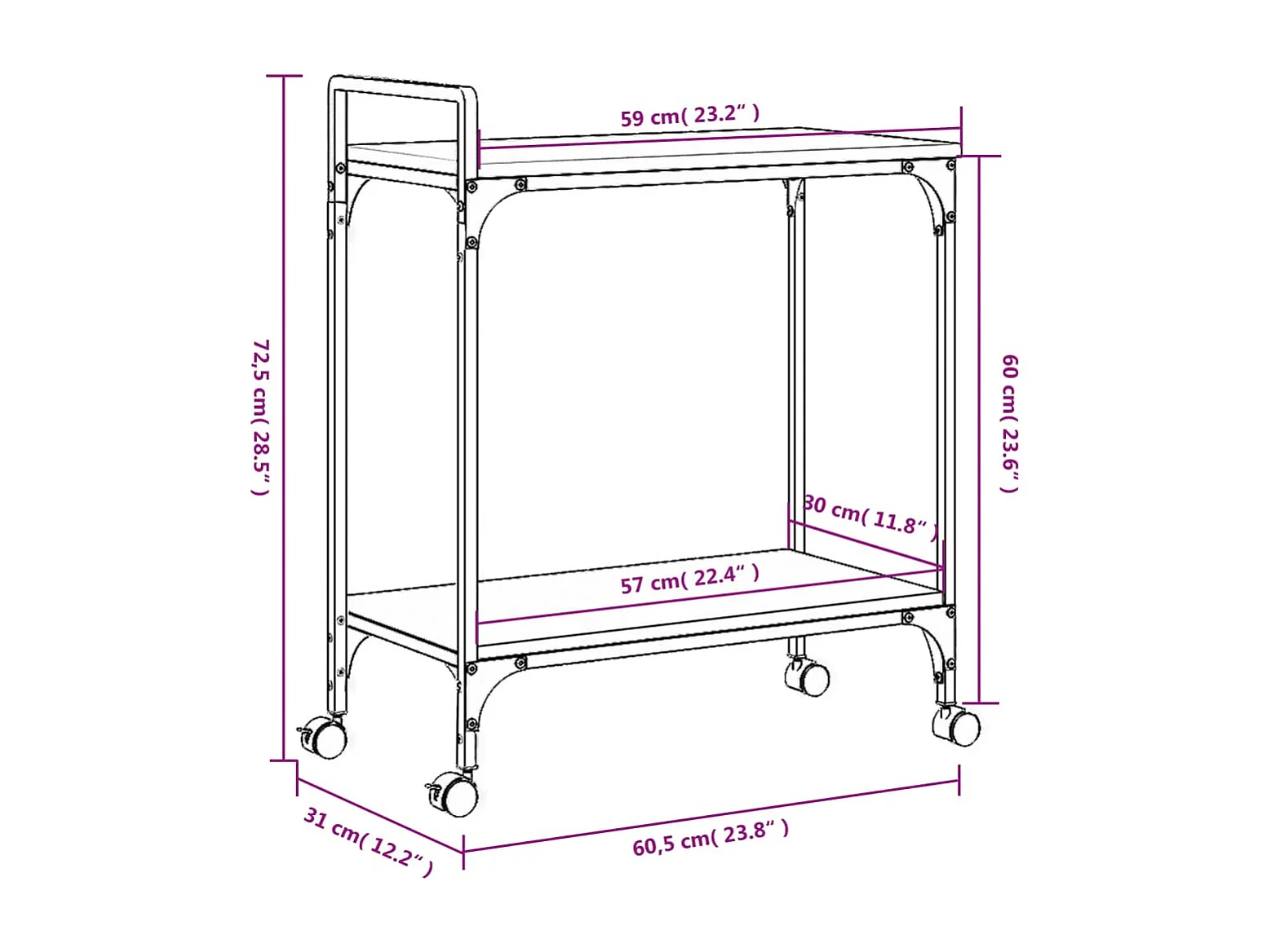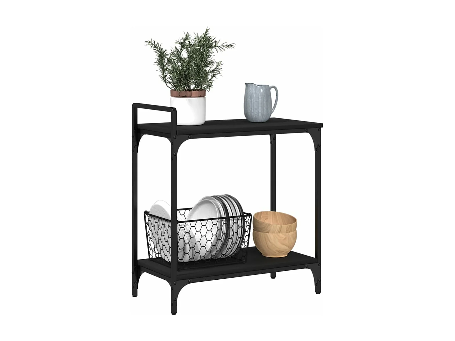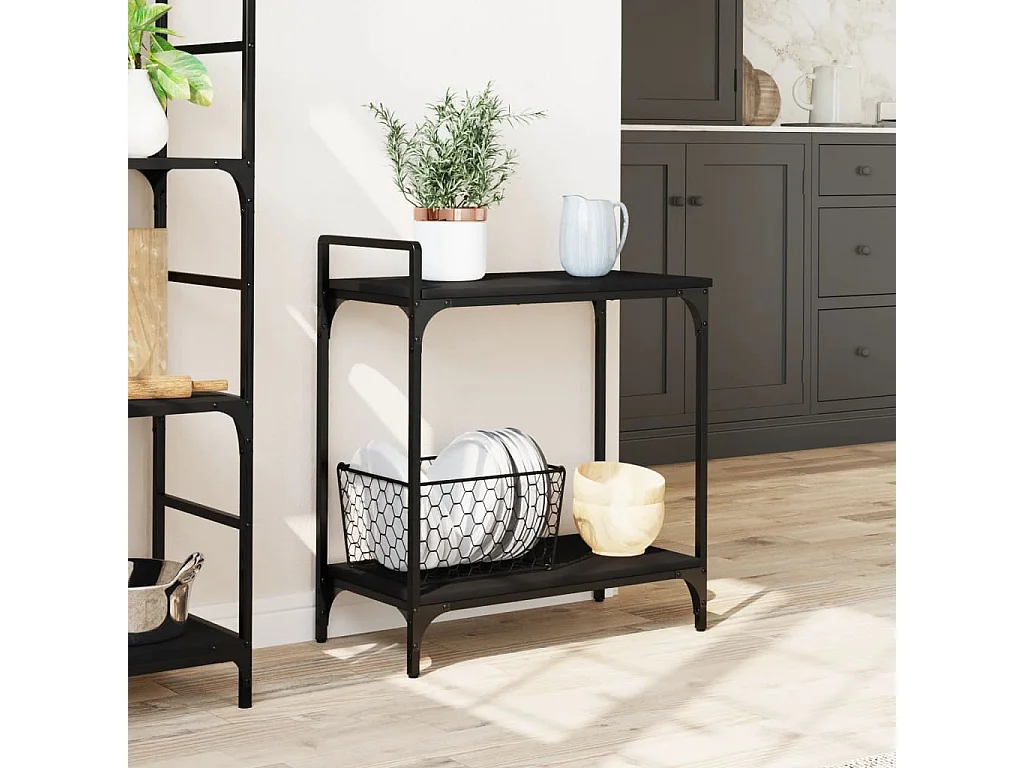Chariot de cuisine noir 60,5x31x72,5 cm bois d'ingénierie
