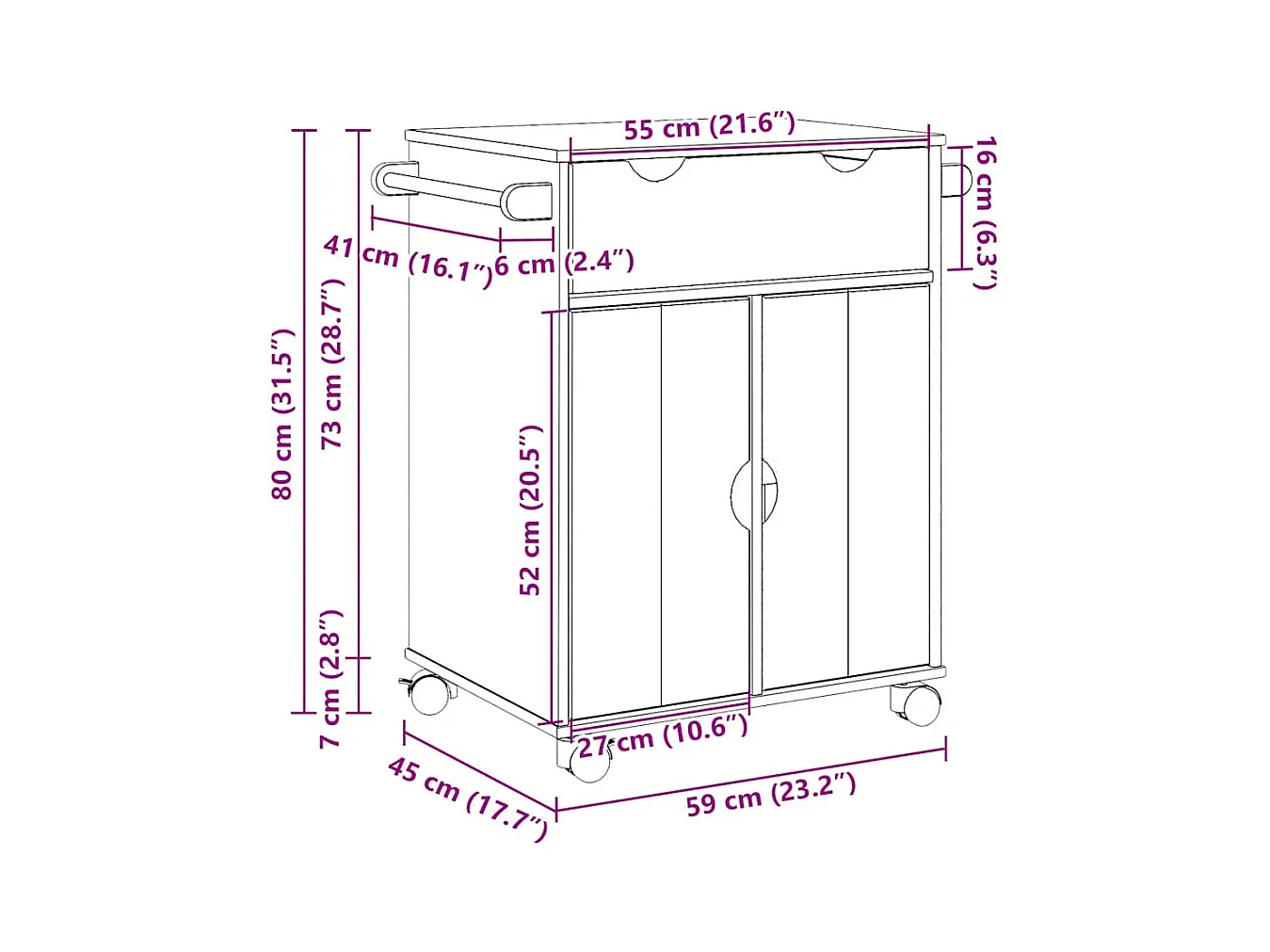 Chariot de cuisine OTTA 59x45x80 cm bois massif de pin