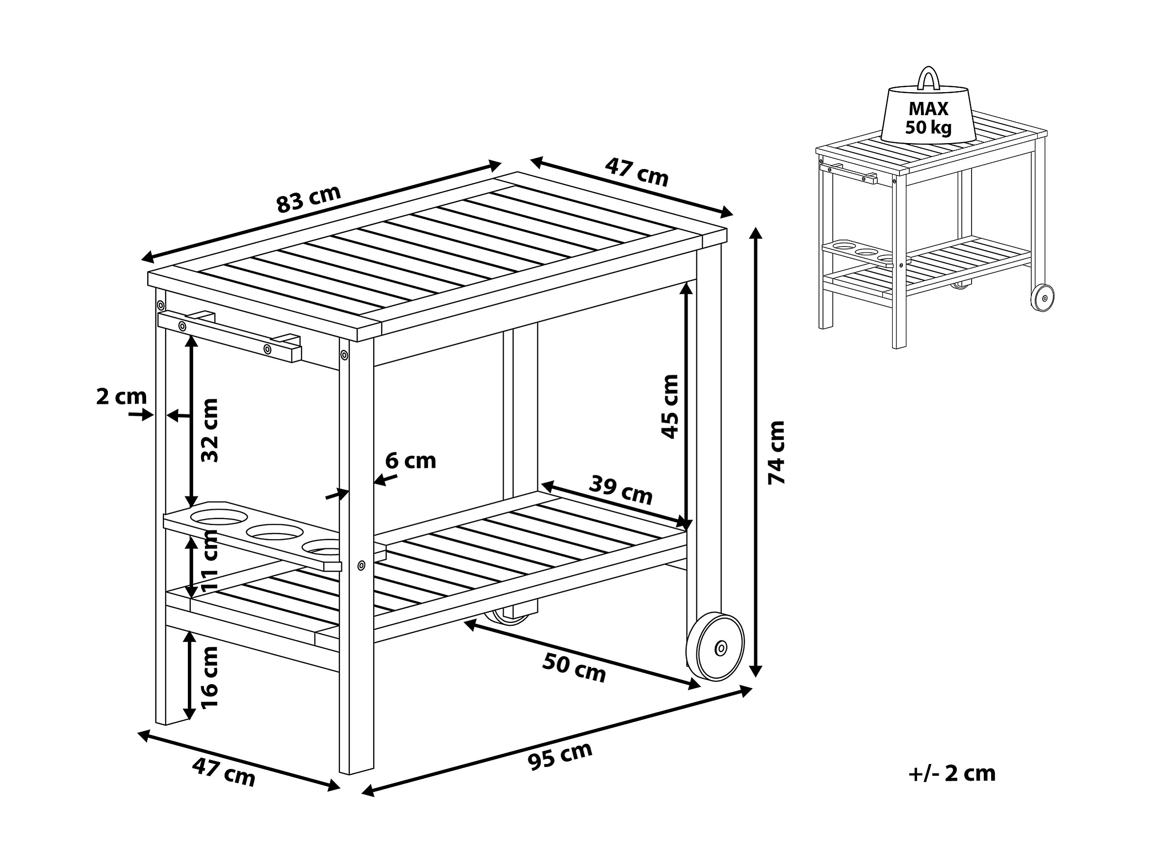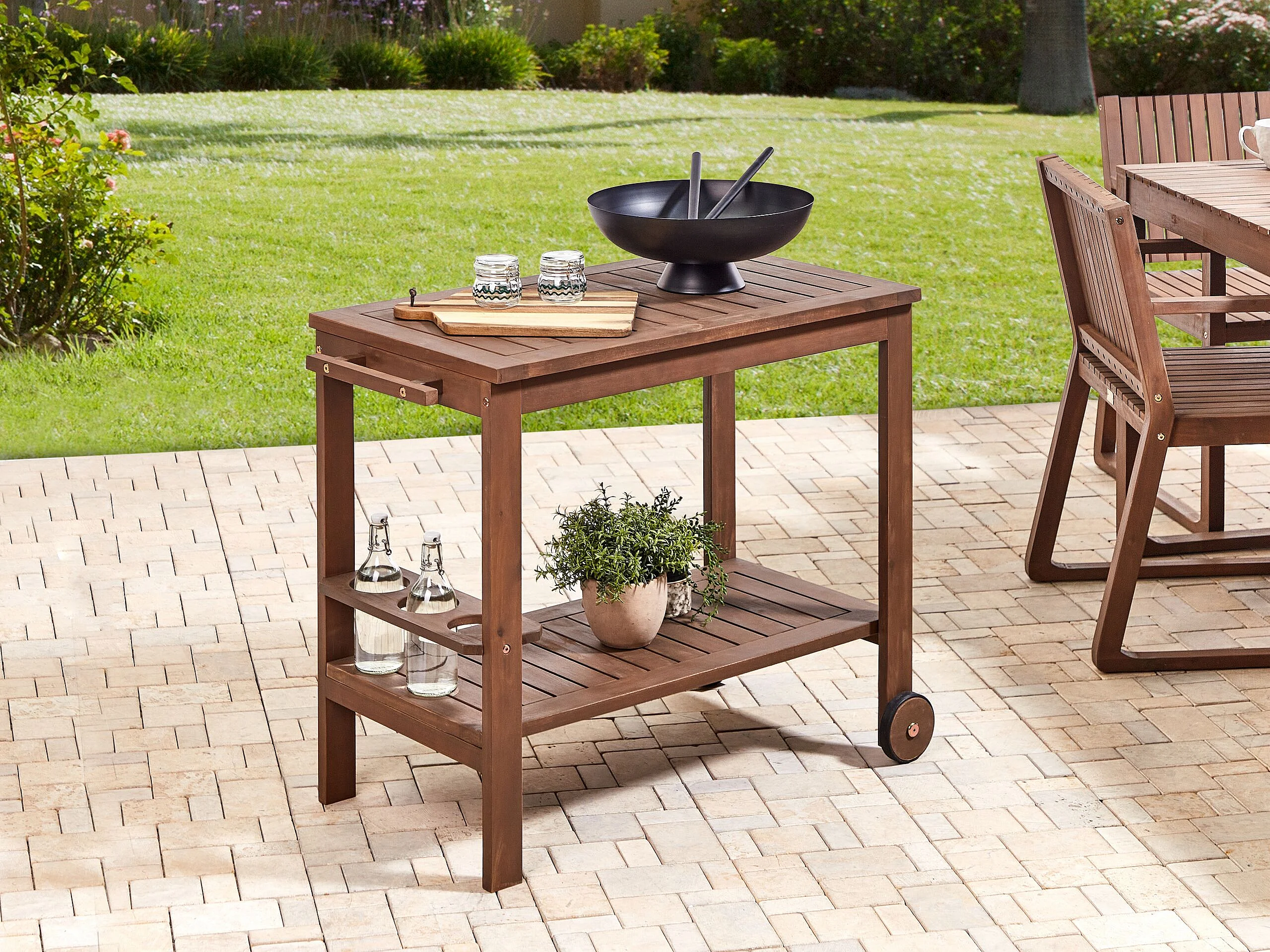 Chariot à boissons de jardin SASSARI Acacia Marron foncé