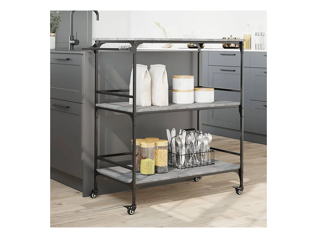 Chariot de cuisine sonoma gris 105x42x95 cm bois d'ingénierie