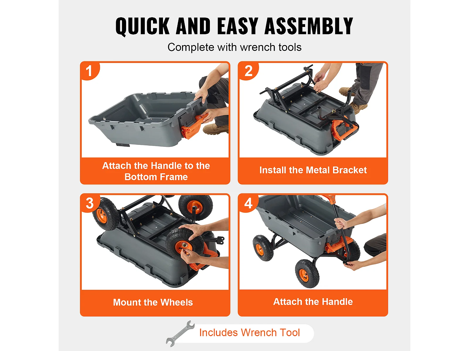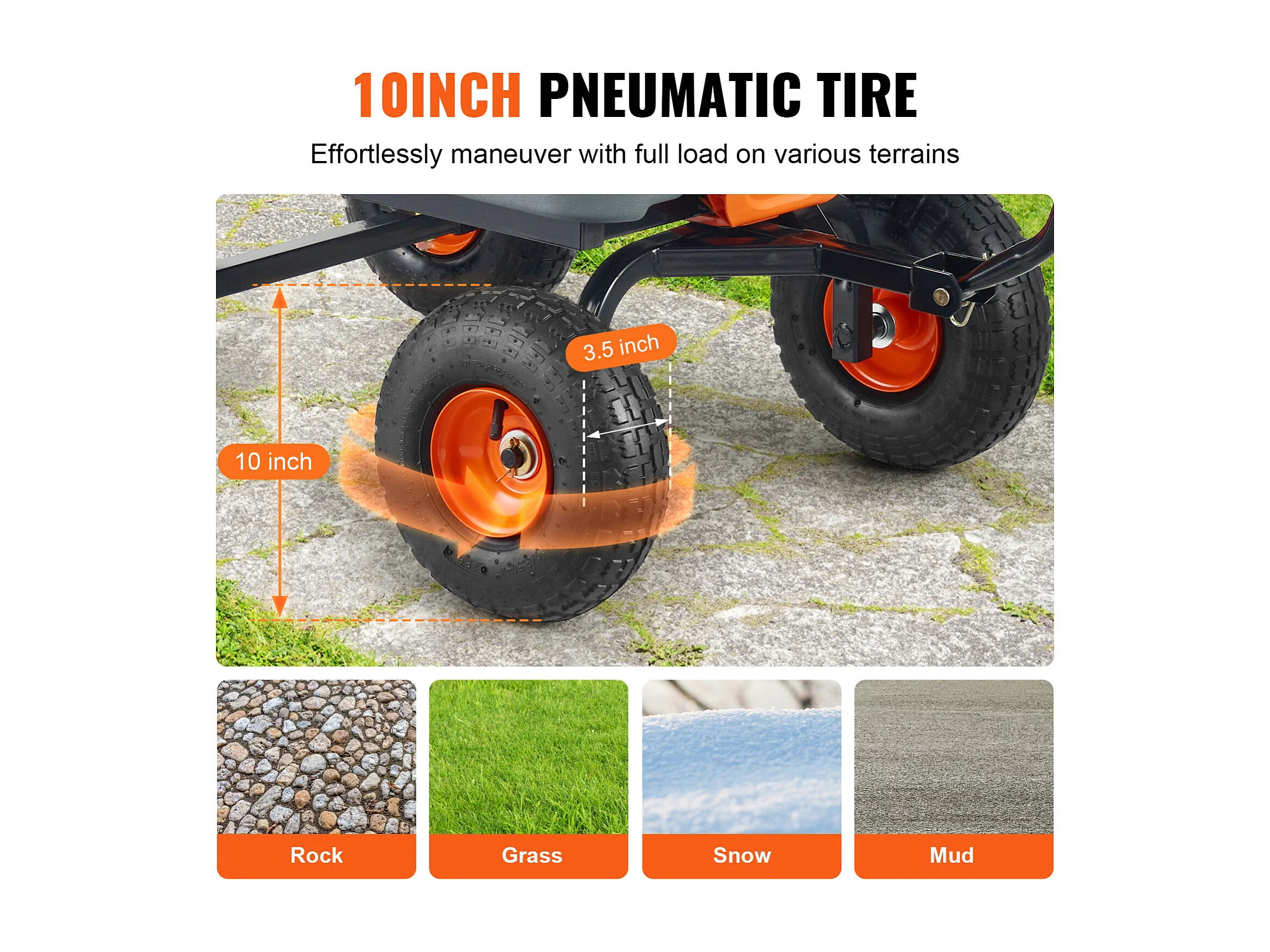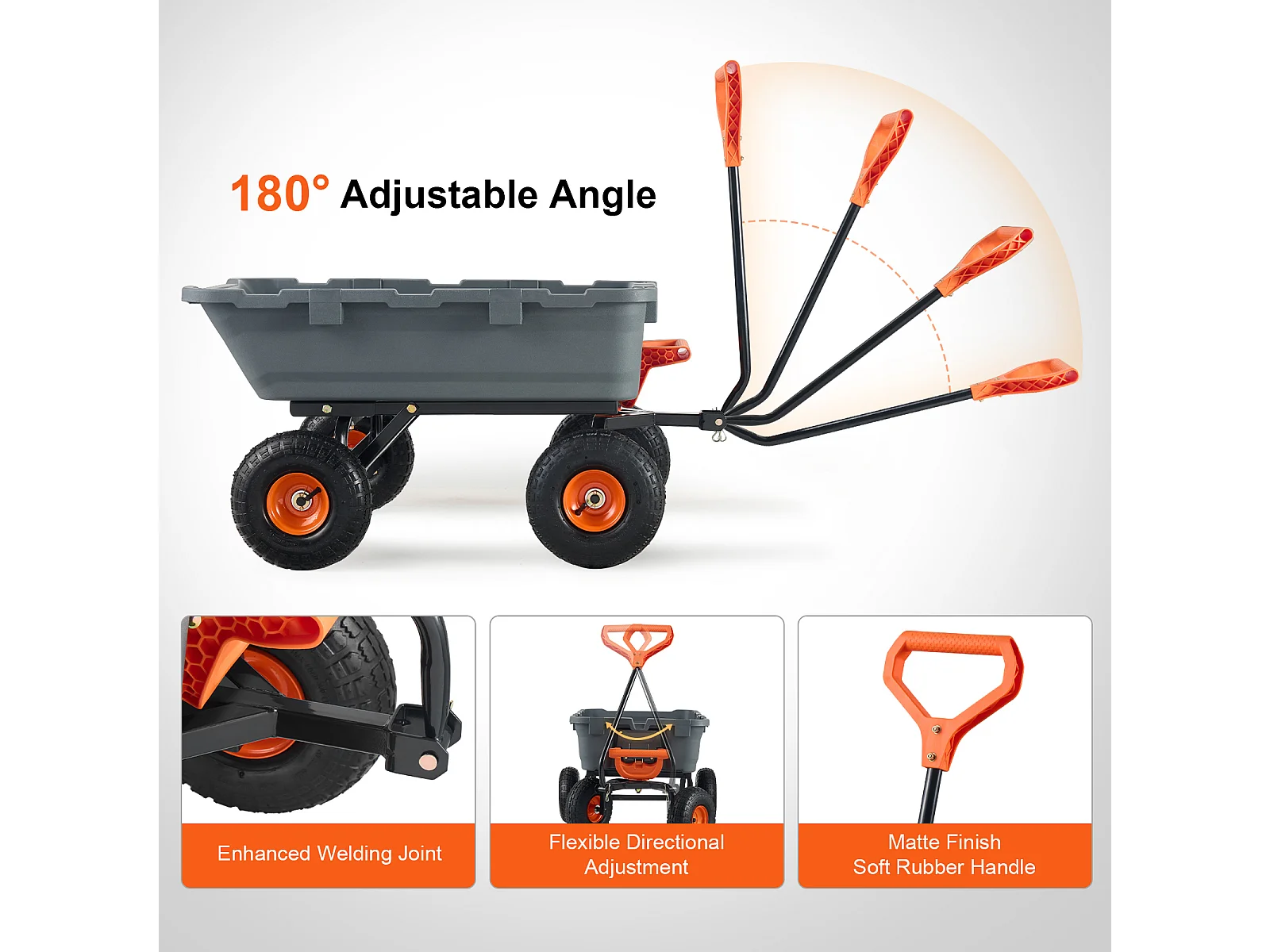Chariot de Décharge Poly Jardin SucceBuy, Chariot de Jardin Robuste, Capacité de Charge 363 kg, Pneus 25,4 cm, avec Cadre en Acier