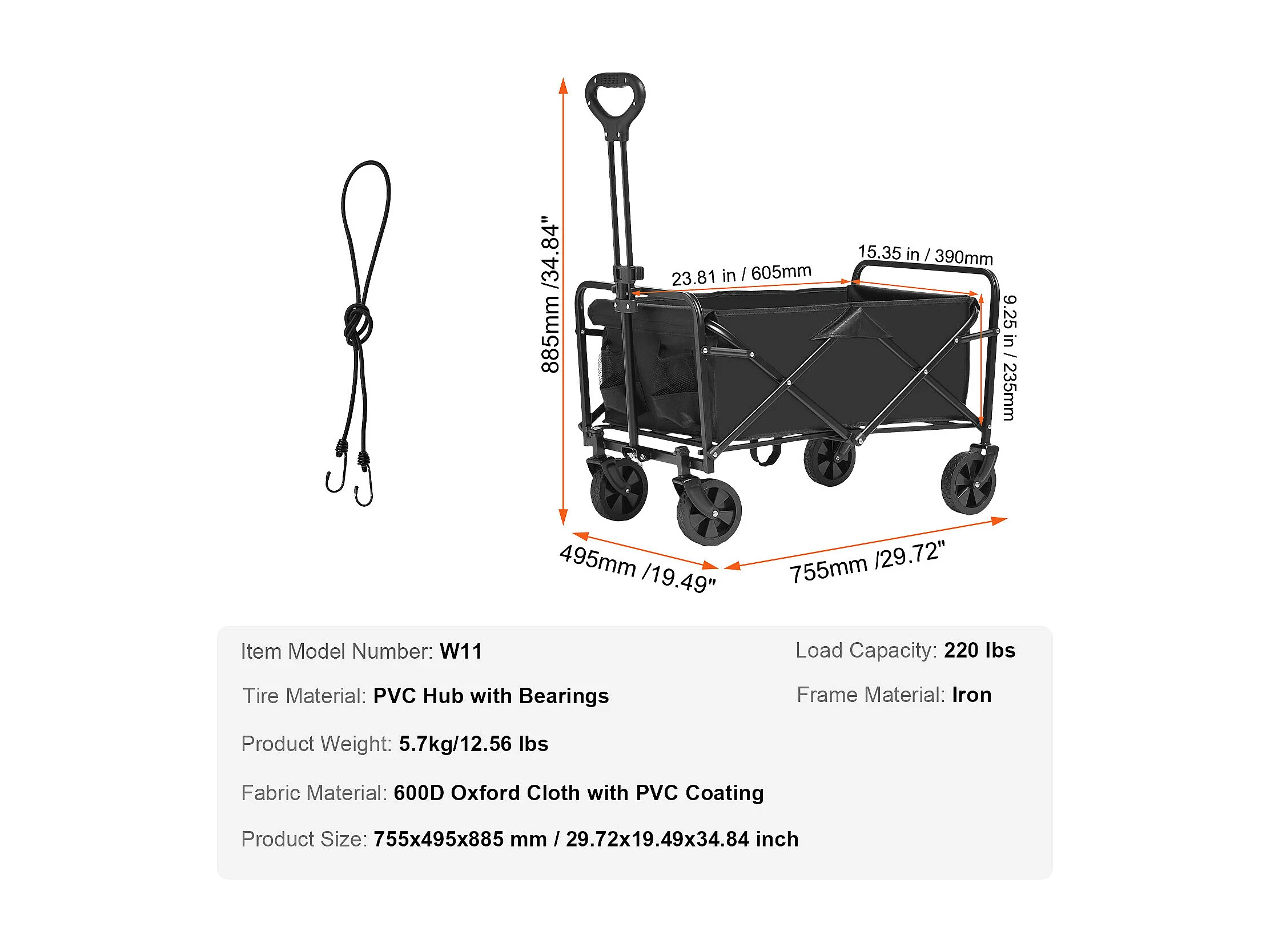 Chariot Pliable SucceBuy, Chariot de Plage Robuste de 220 L, Capacité de 330 lb