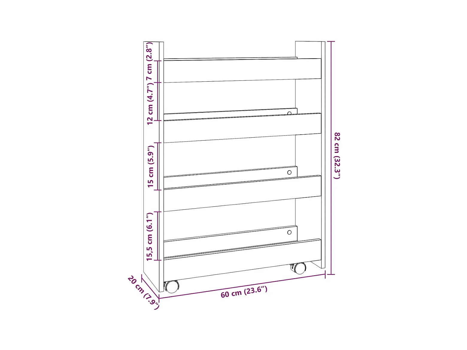 Chariot de rangement étroit 4 niveaux chêne sonoma
