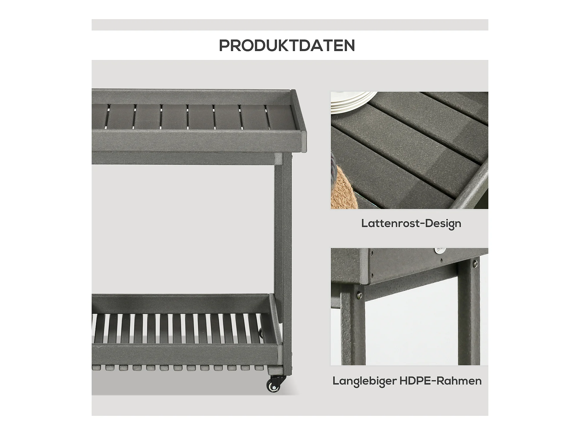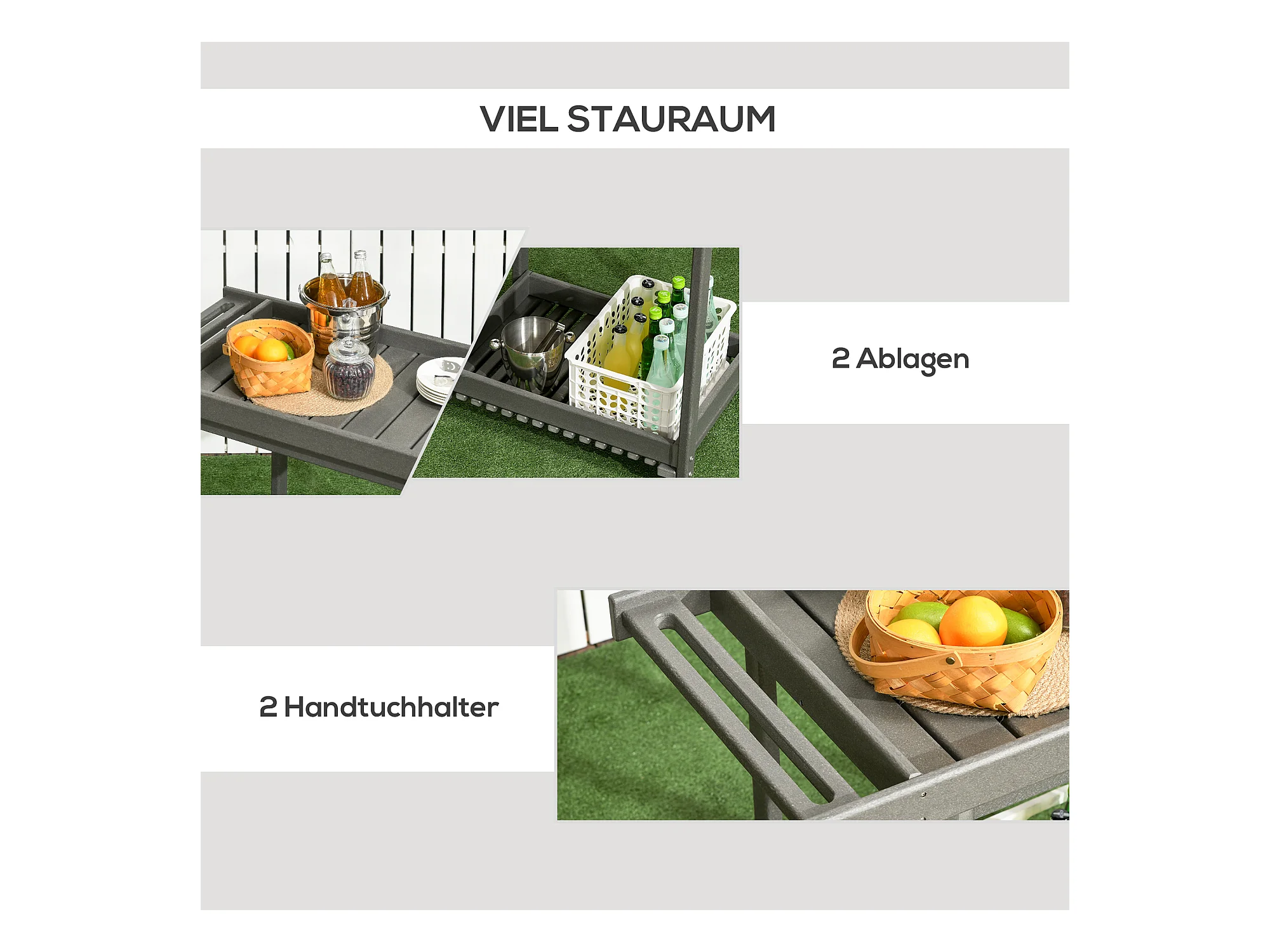 Chariot de service barbecue avec porte-serviettes, métal, gris foncé, 2 étagères, (87x50x80 cm)