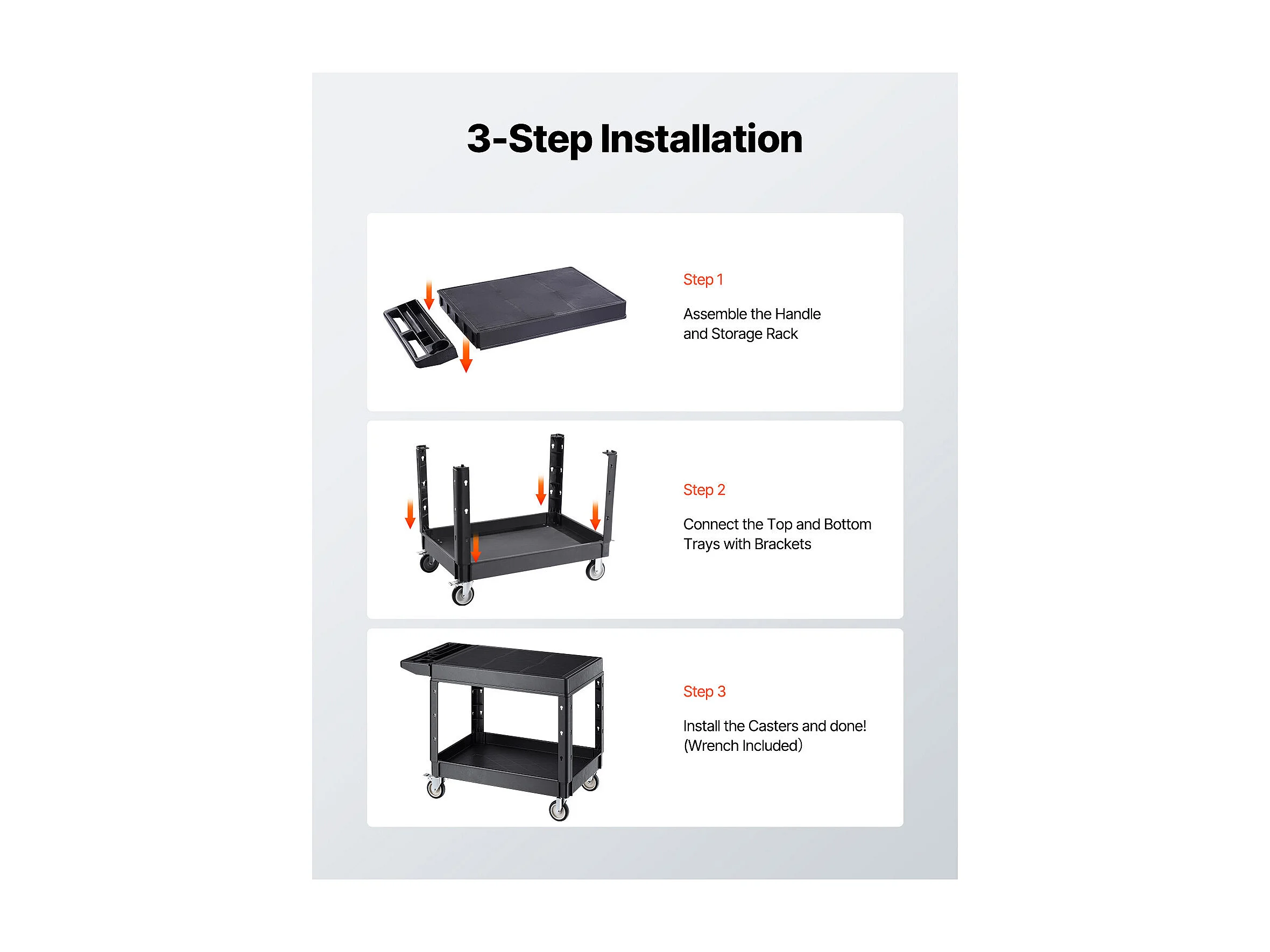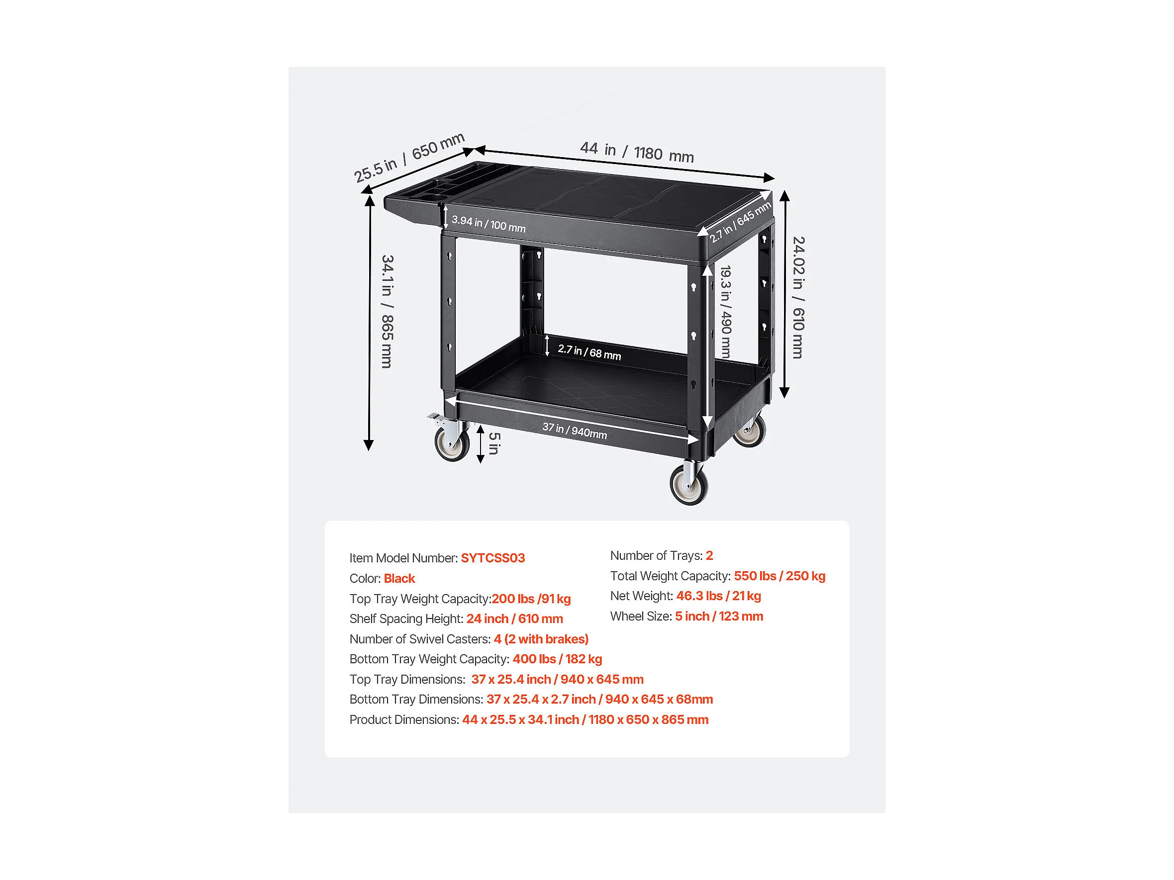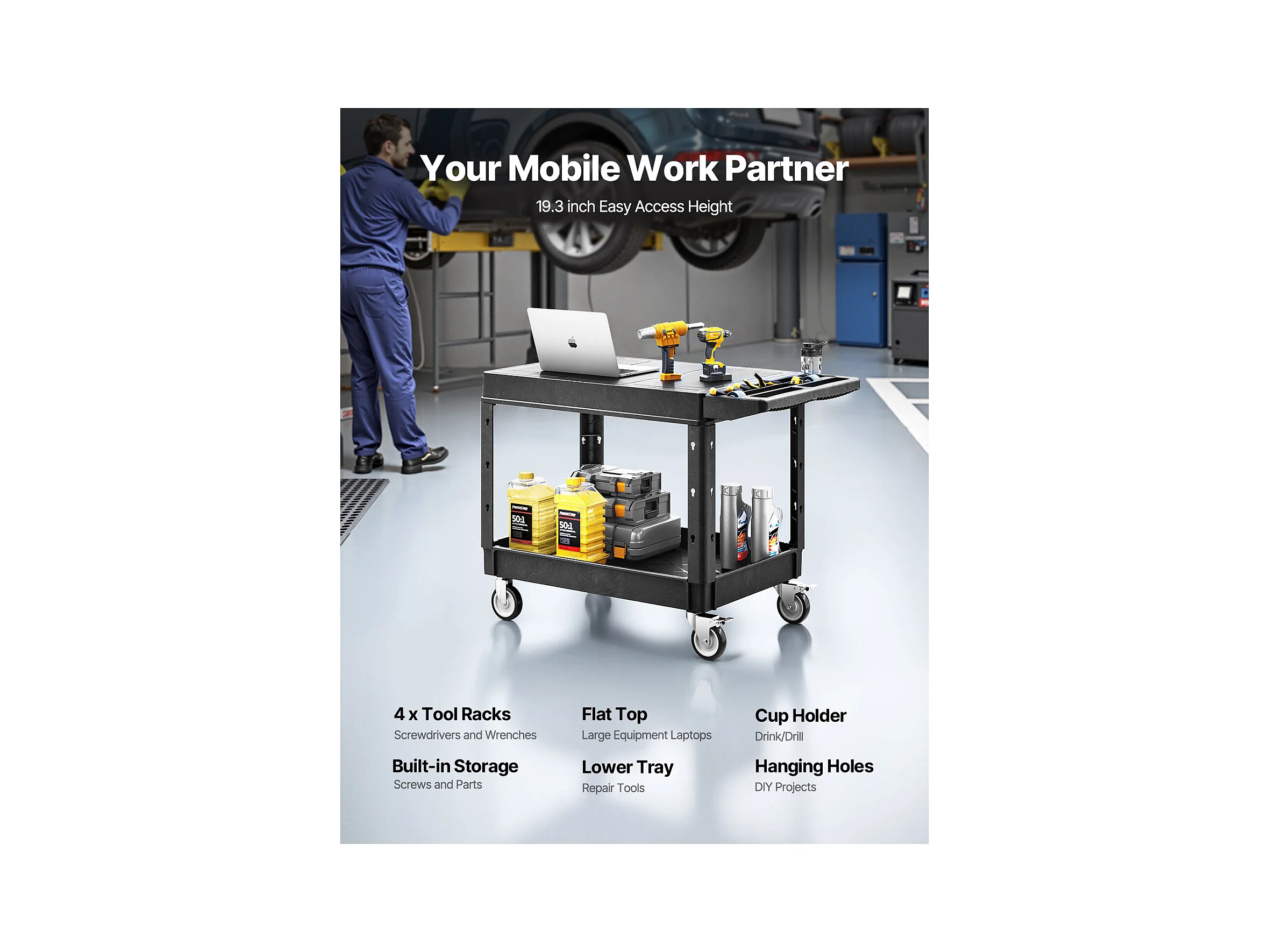 Chariot de Service Desserte SucceBuy, 2 Niveaux, Noir, 118x65x86,5 cm