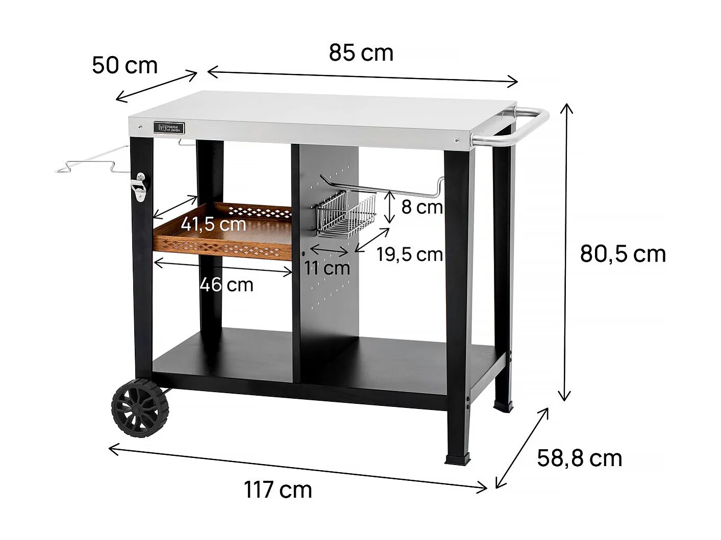 Desserte de barbecue en métal "Gelia" - 117 x 59 x 80 cm - Noir