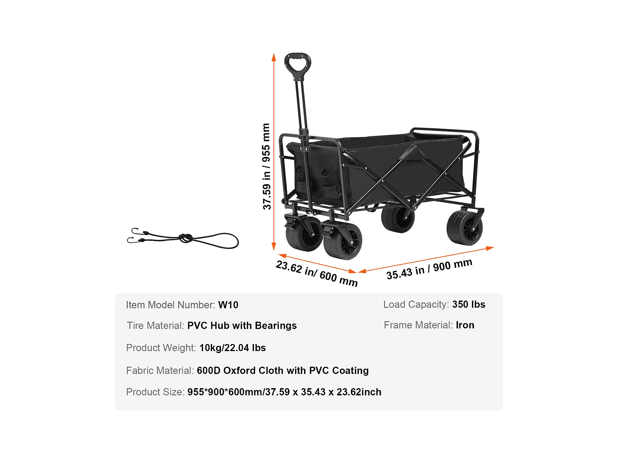 Chariot Pliable SucceBuy, Chariot de Plage Robuste de 220 L, Capacité de 330 lb